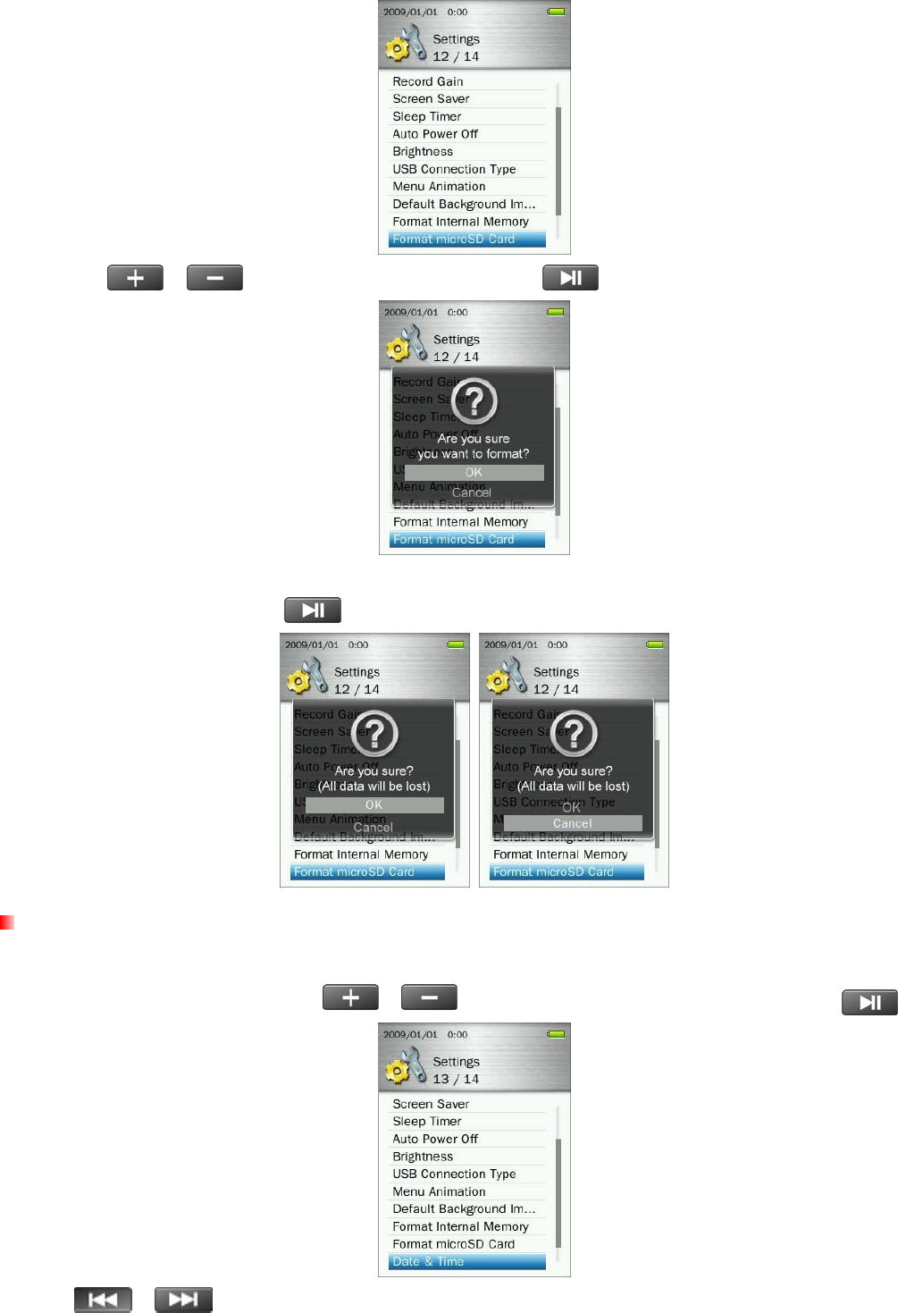 Formatting the MP860 using the “Quick Format,” or “Full Format” option in Windows® erases the default
