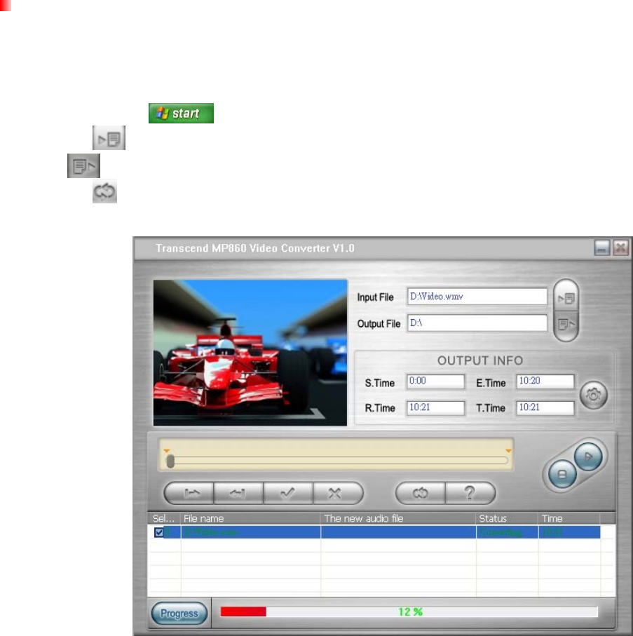 The MP860 only supports “MPEG4 SP(Xvid) and FLV” video files. You must use the “MP860 Video