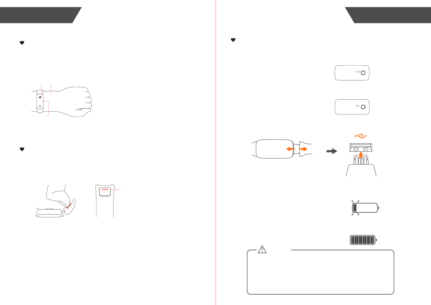 • Do not wear your Lifesense Band 2S while you are charging it.