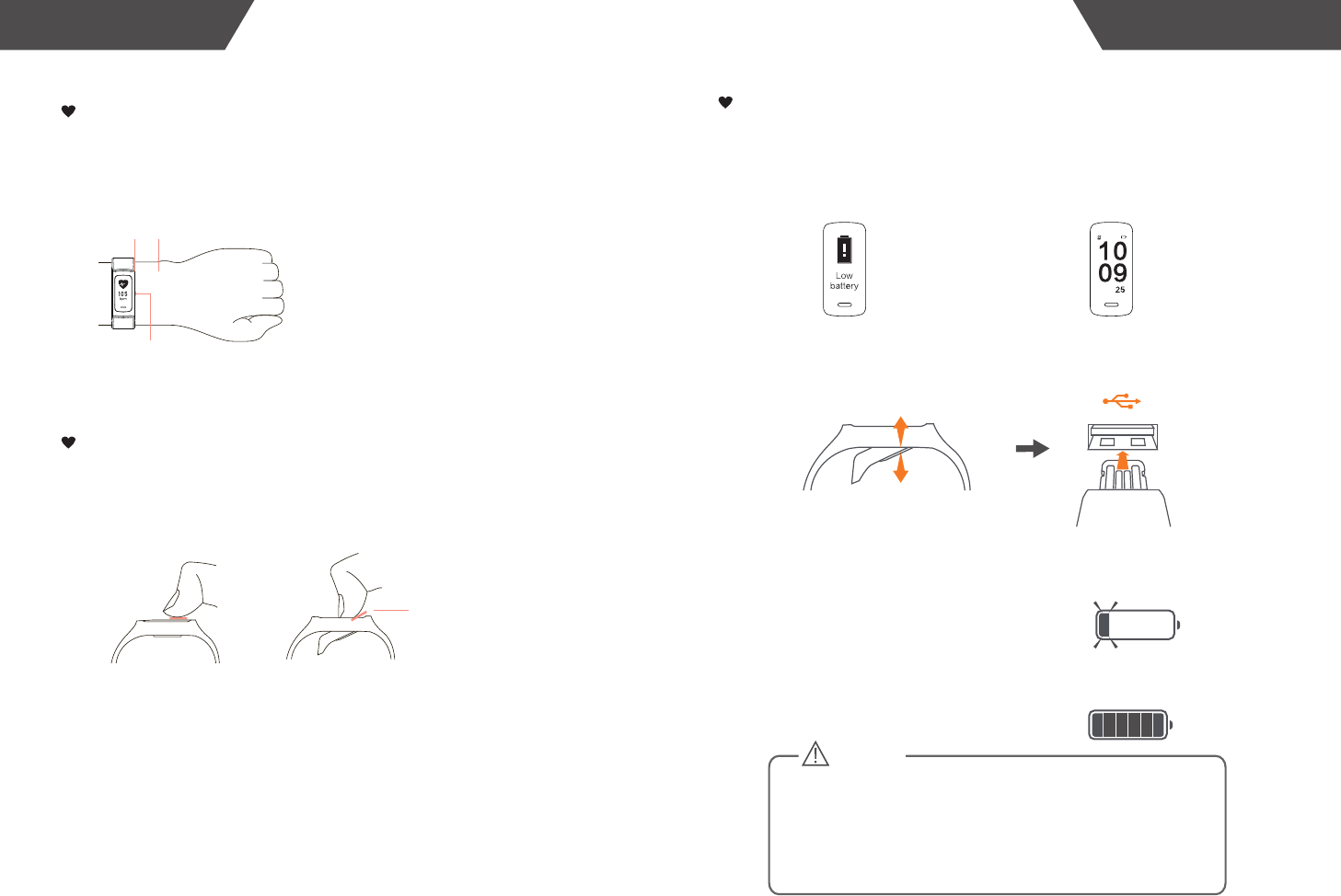 • Do not wear your Lifesense Band 3 while you are charging it.