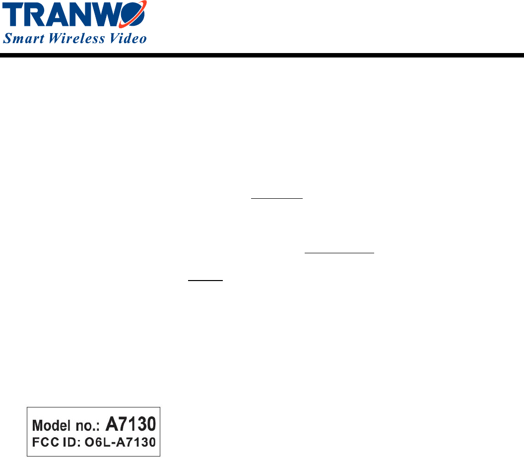 a visible area with the following: “Contains FCC ID: O6L-A7130”. The grantee's FCC ID can be used