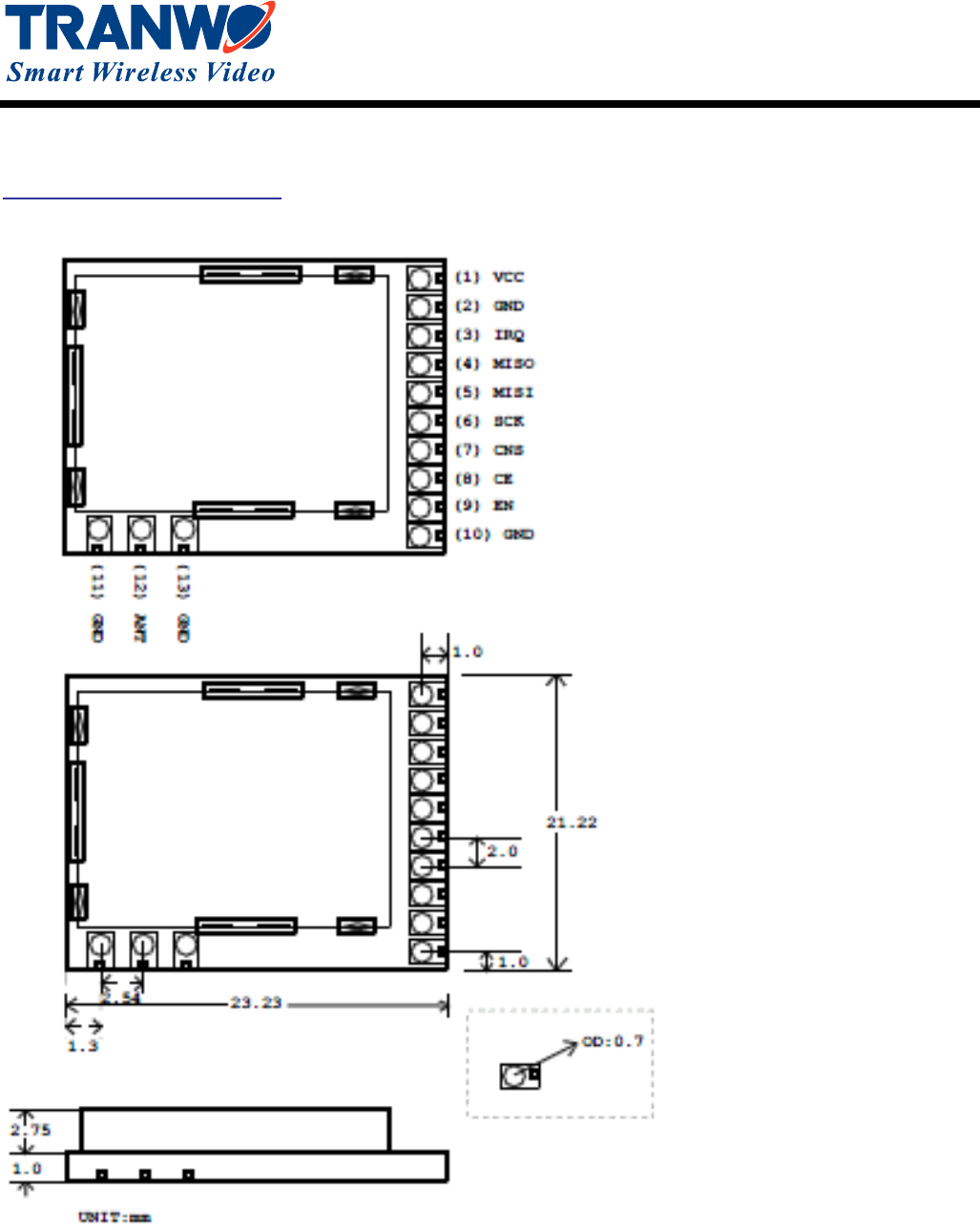 Tranwo Technology MA8802A 2.4GHz Digital Audio Video Module User Manual MA8802A 2M RF module spec