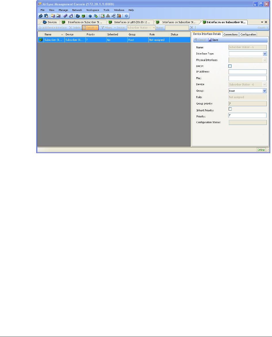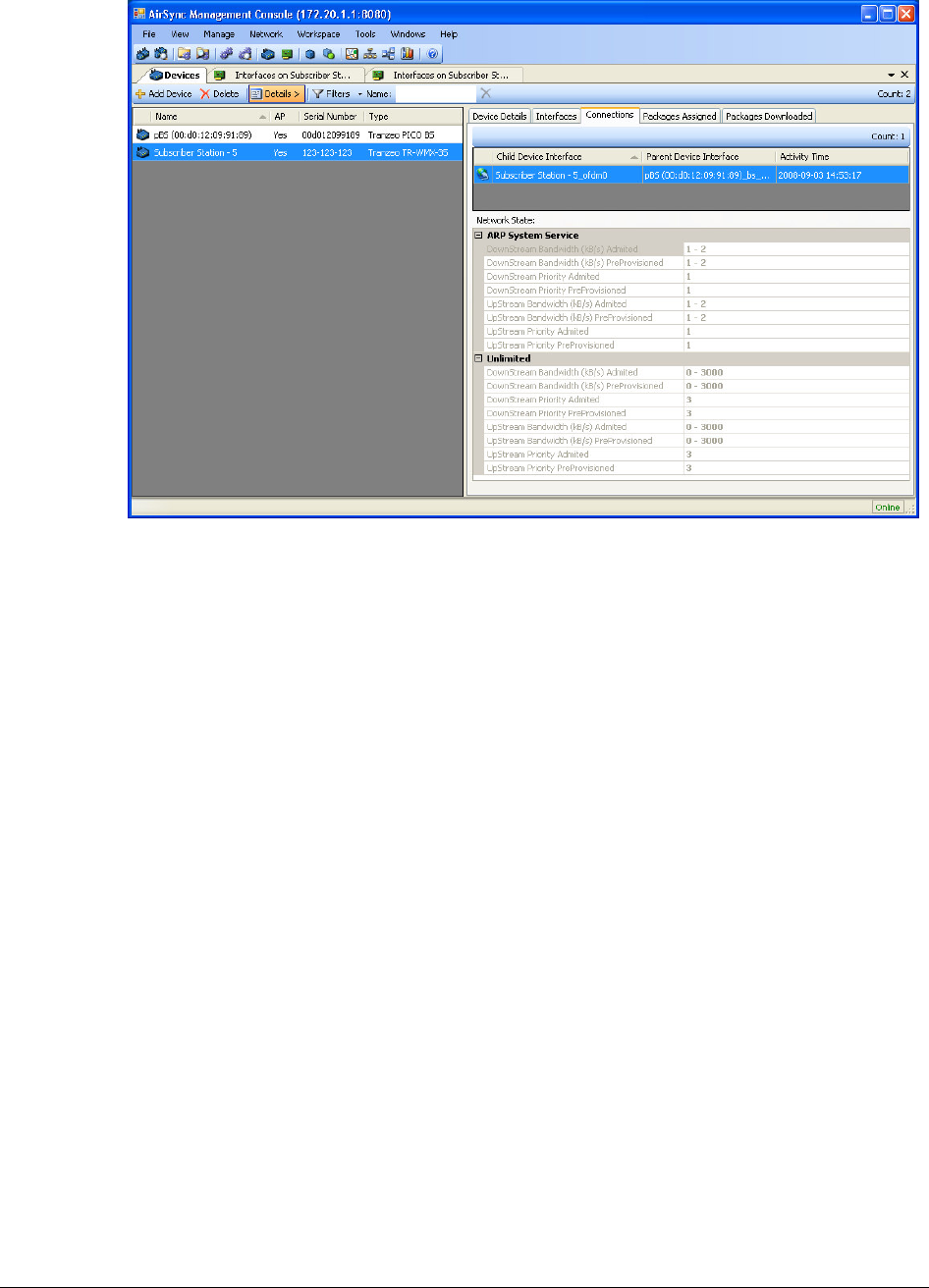 4. In the Connections tab, click the Subscriber Unit. If the row appears in