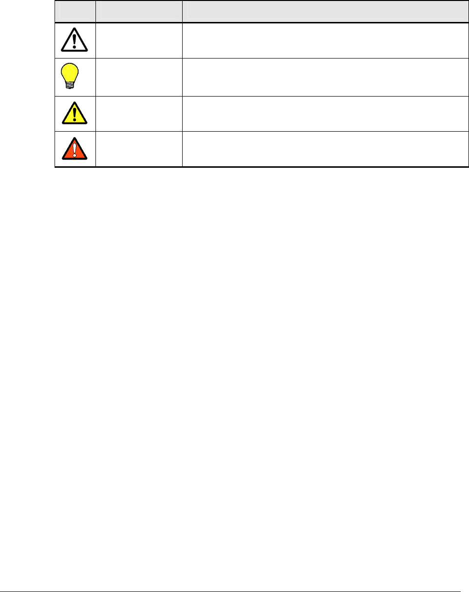 This guide uses icons to draw your attention to certain information. Warnings are the