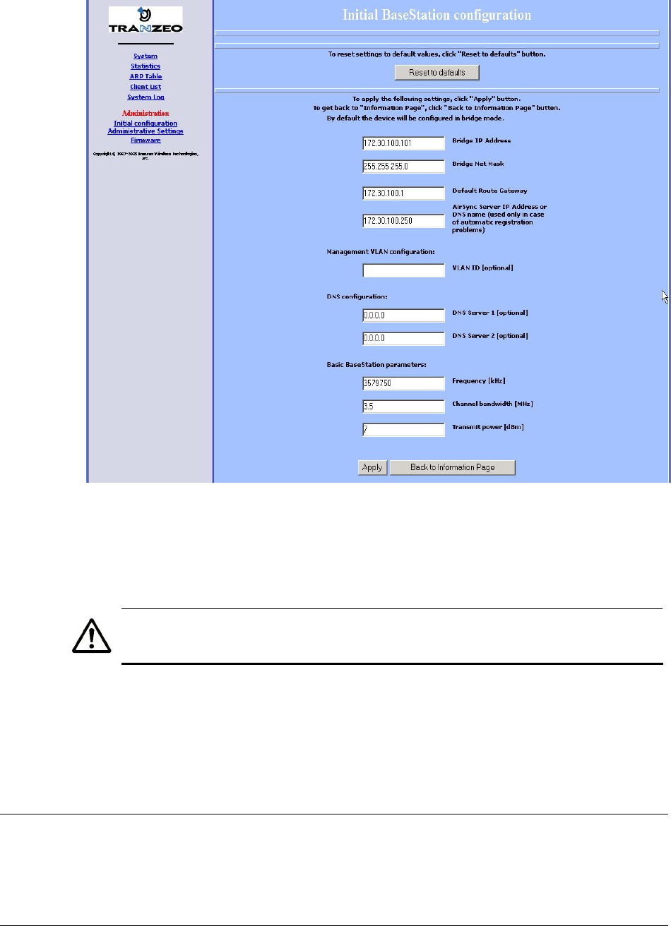 Tranzeo Wireless Technologies, Inc 5.8 GHz WIRELESS BASE STATION Quick Configuration Guide