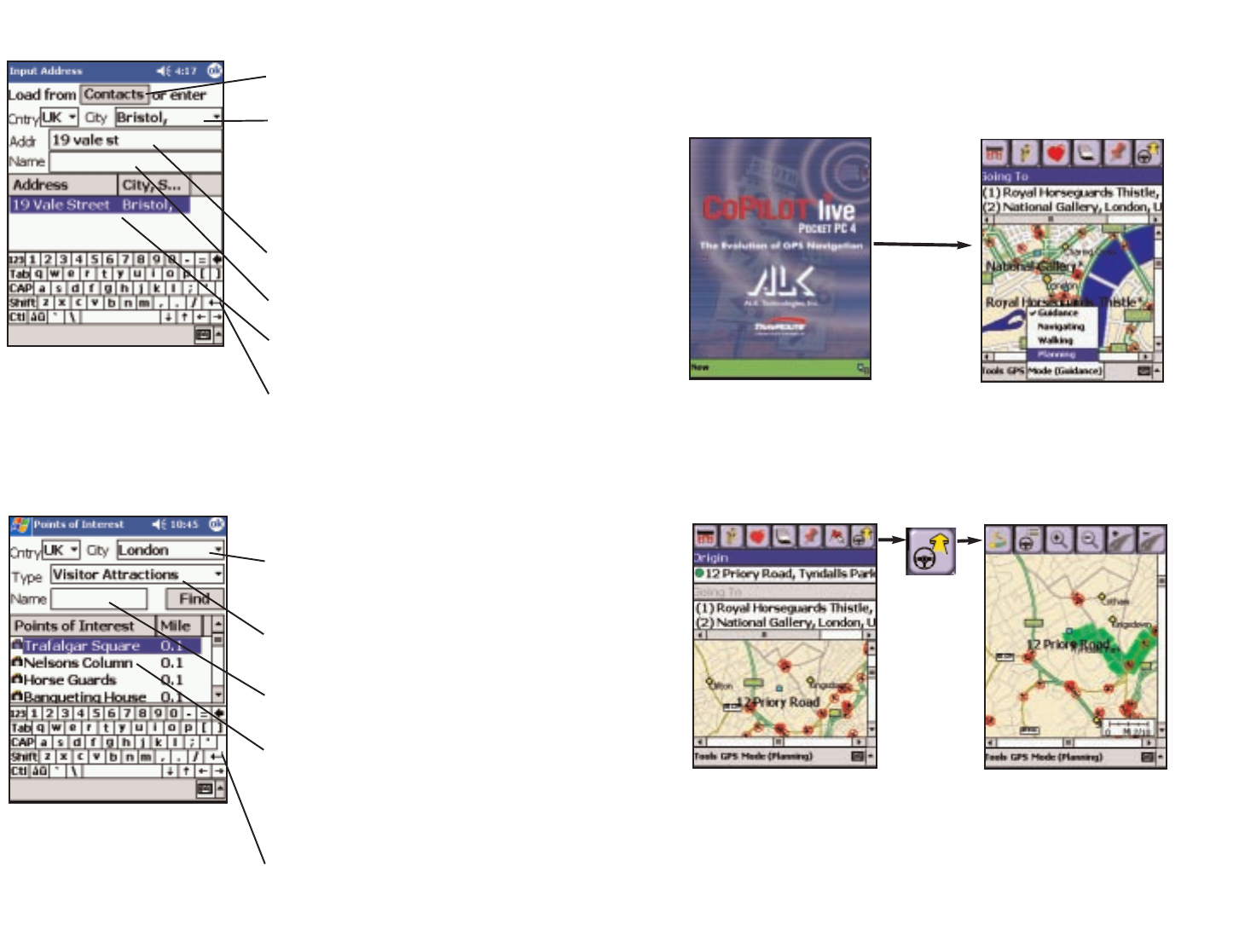 on your Pocket PC, but provides less detailed driving instructions. Click