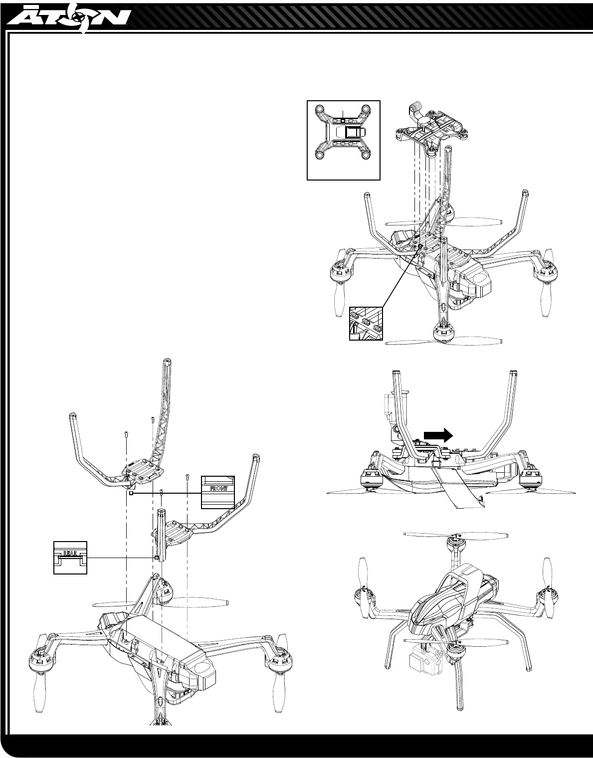 Use the included 2.6x8mm screws to mount the front and rear landing gear