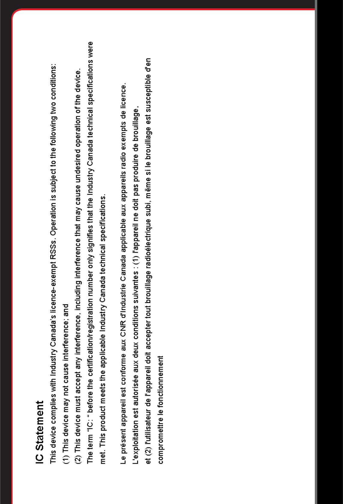 exempt RSS standard(s). Operation is subject to the following two conditions: This device may not cause interference, and This