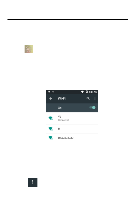 1. Tap Settings→ WIRELESS & NETWORKS→ WLAN, then touch