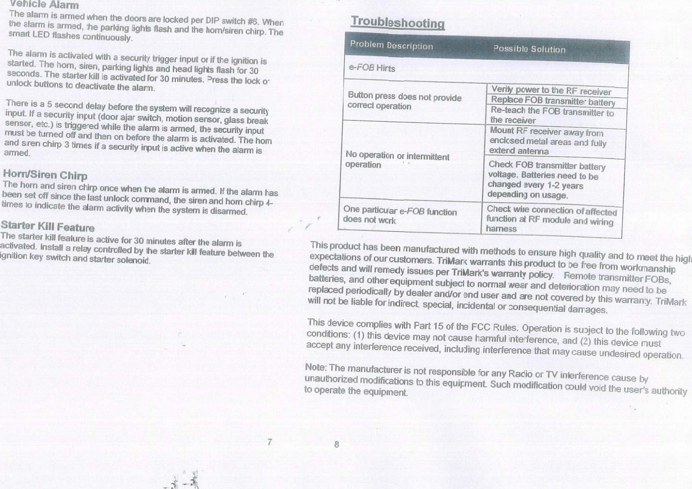 TriMark ERX e-FOB RF KEYLESS-ENTRY SYSTEM User Manual FF eFOB 032706