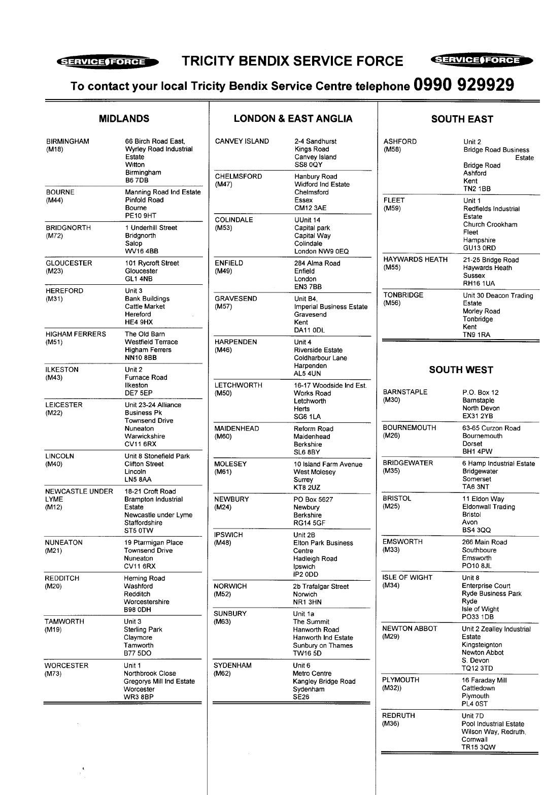 Tricity Bendix, 99 Oakley Road, Luton, Beds LU49QQ