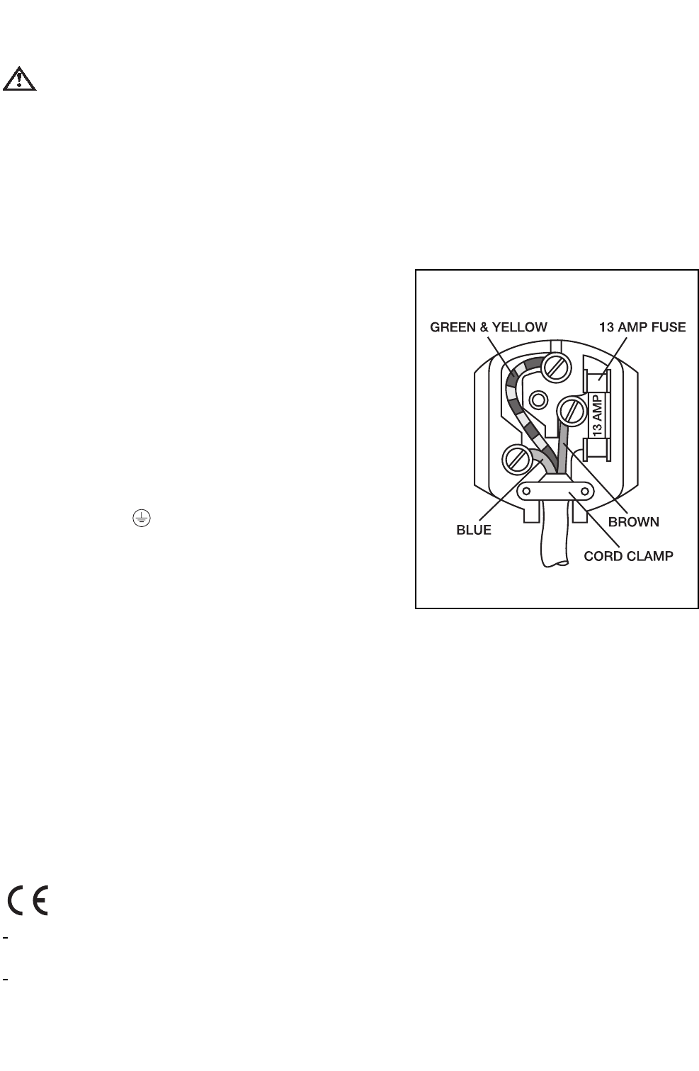 The appliance is supplied with a 13 amp plug fitted. In