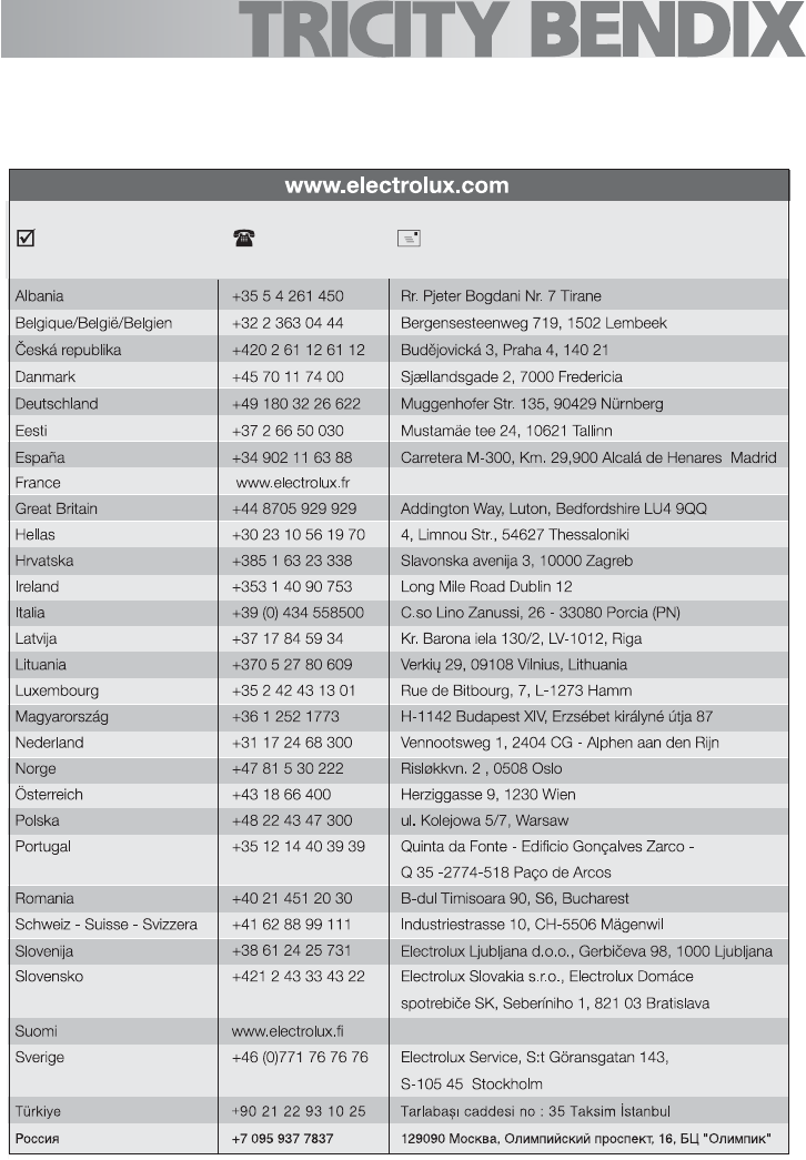 telephone at the address below or visit our website at www.electrolux.co.uk
