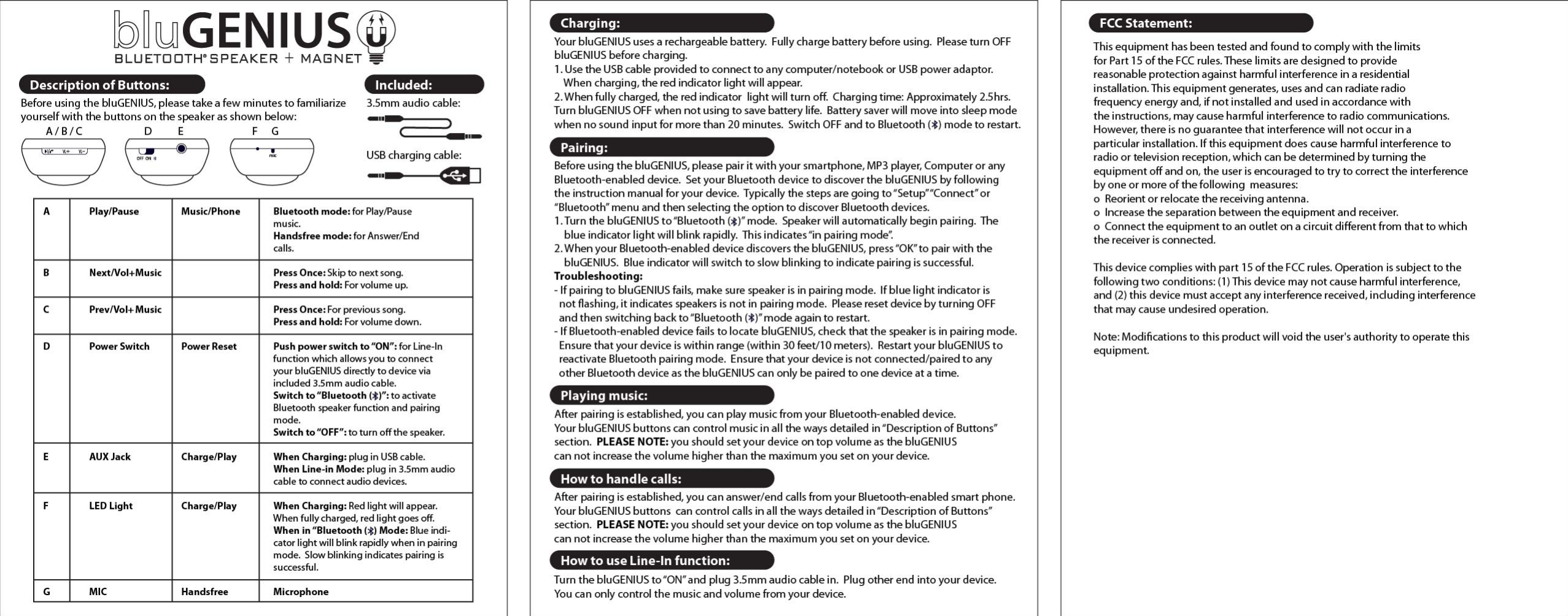 Triple C Designs ASN121 blueGENIUS Wireless Speaker User Manual Manual