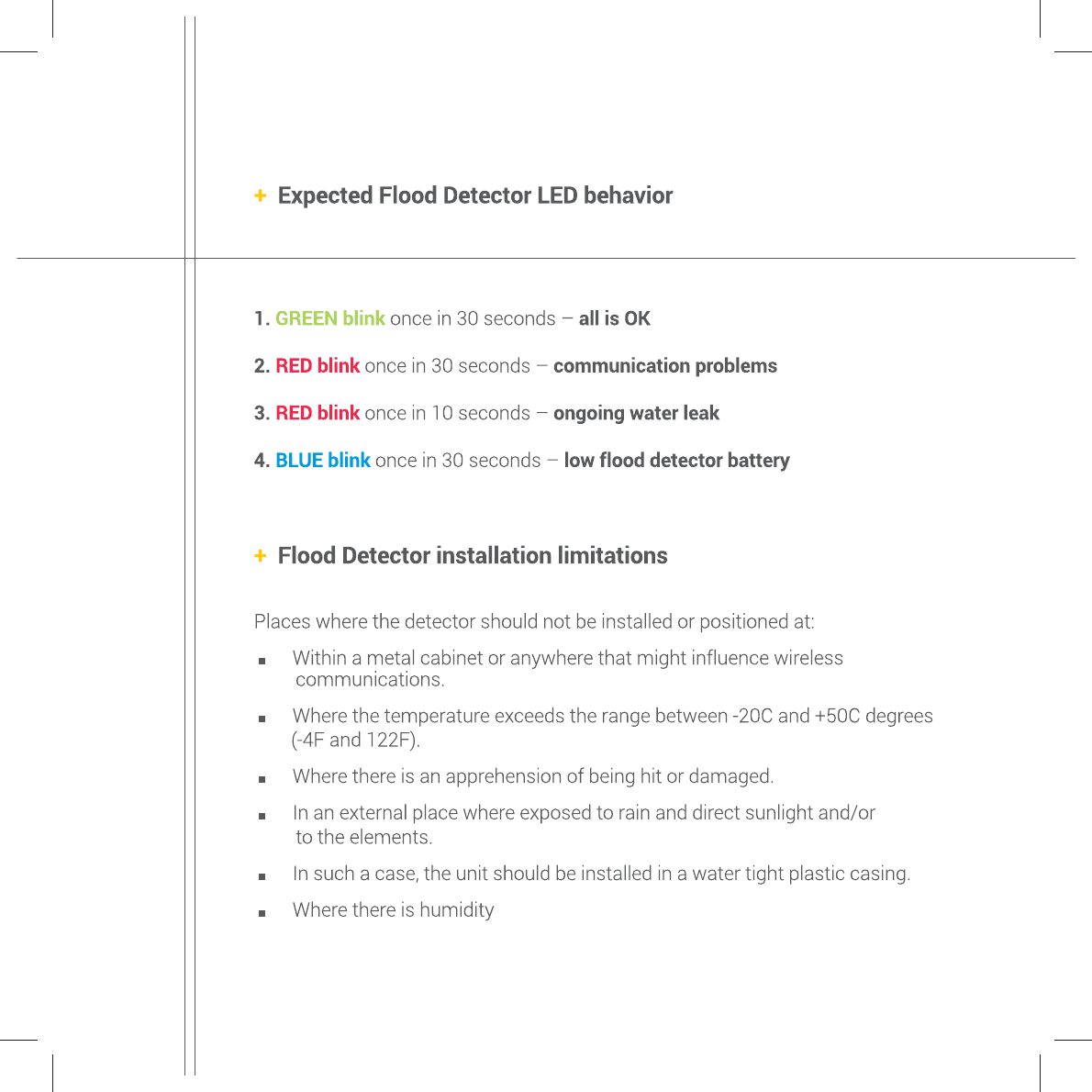 water flood detectors, shutoff units and HUB. Signal repeaters can be included if