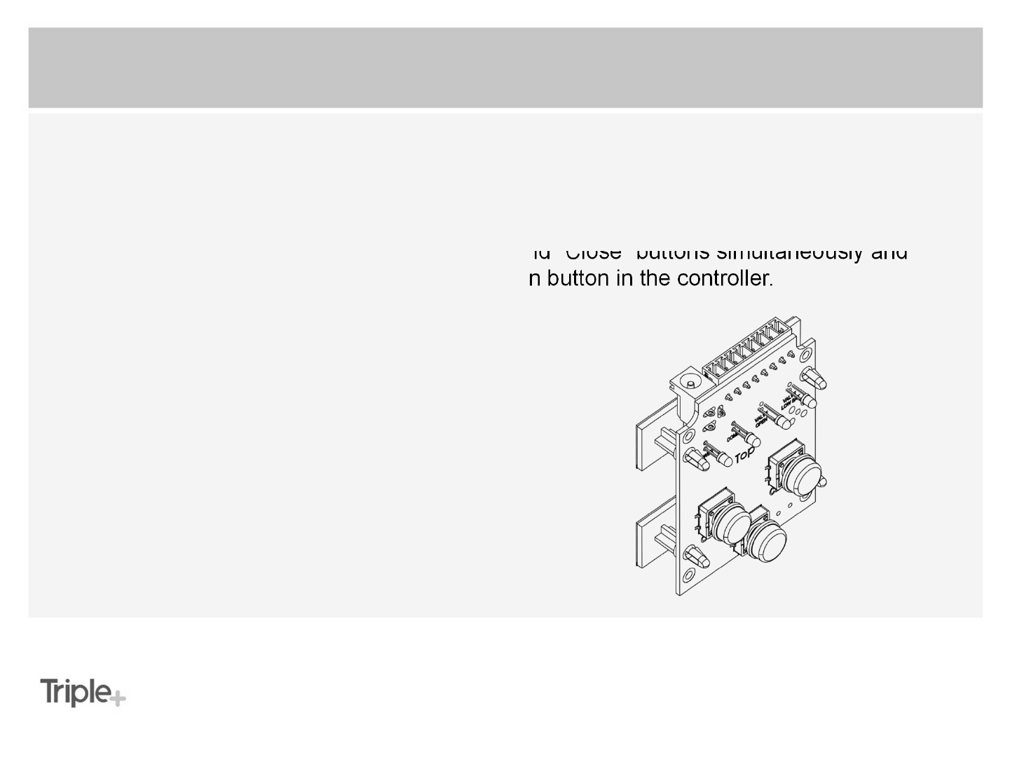 in the controller, while pressing the "Open" and "Close" buttons simultaneously and