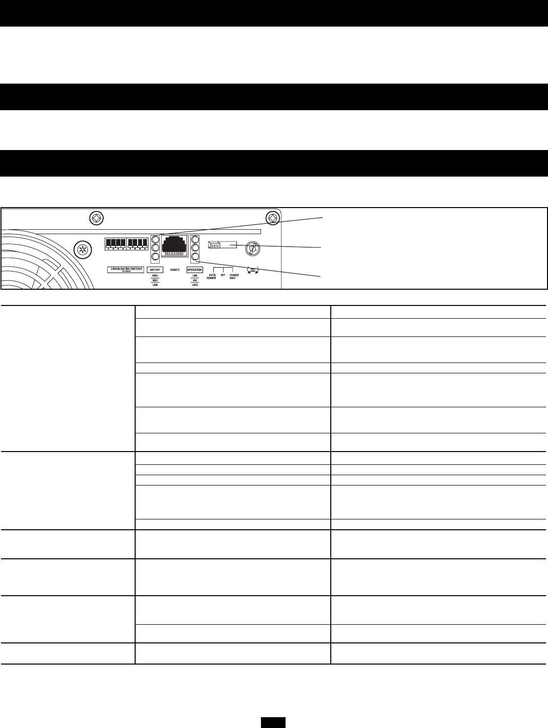 Red “LOW” Battery Battery voltage is low. Unit will automatically shut down Make sure that AC power is present in order to recharge batteries.