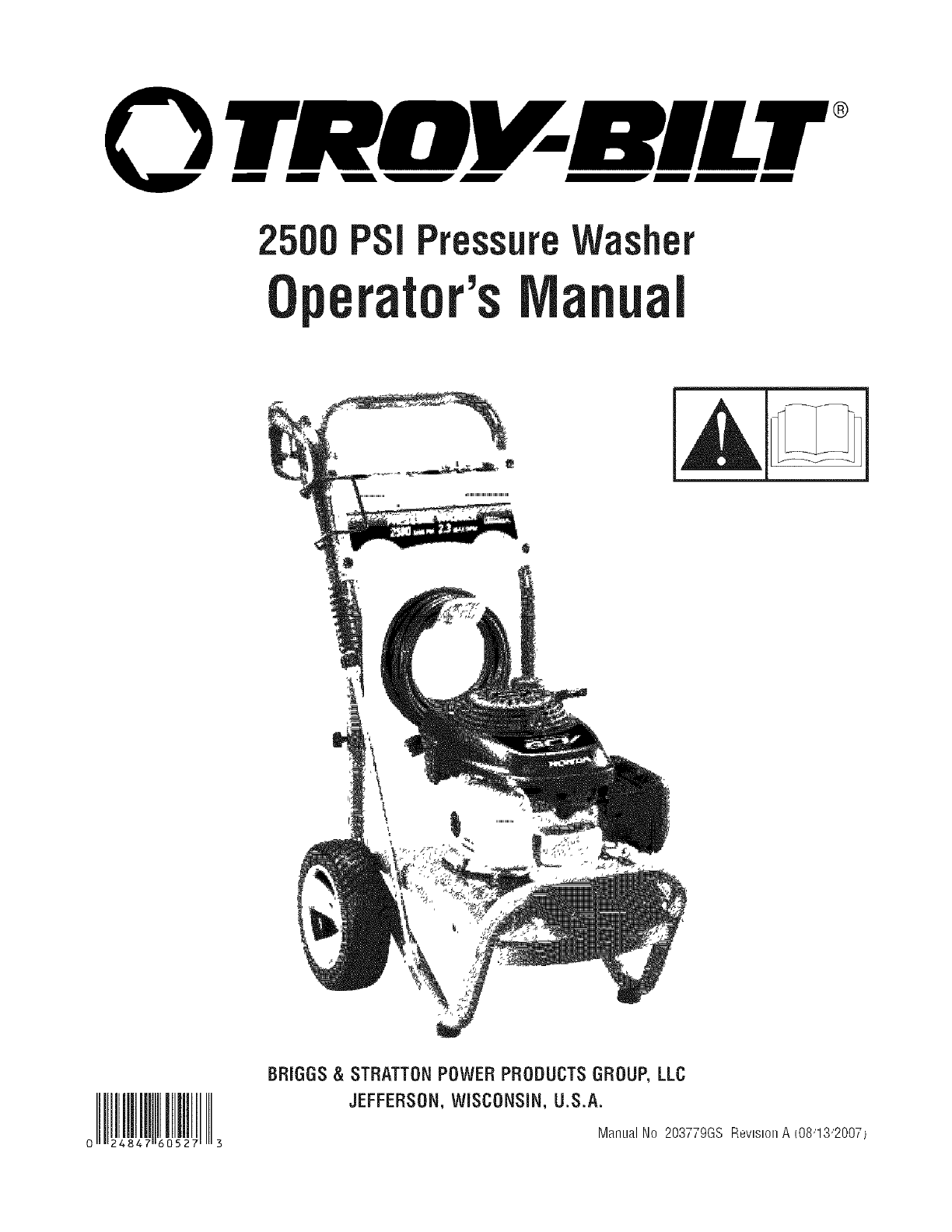 TROYBILT Power Washer, Gas Manual L0803336 TROYBILT Power Washer, Gas Owner's Manual, TROYBILT Power Washer, Gas installation guides