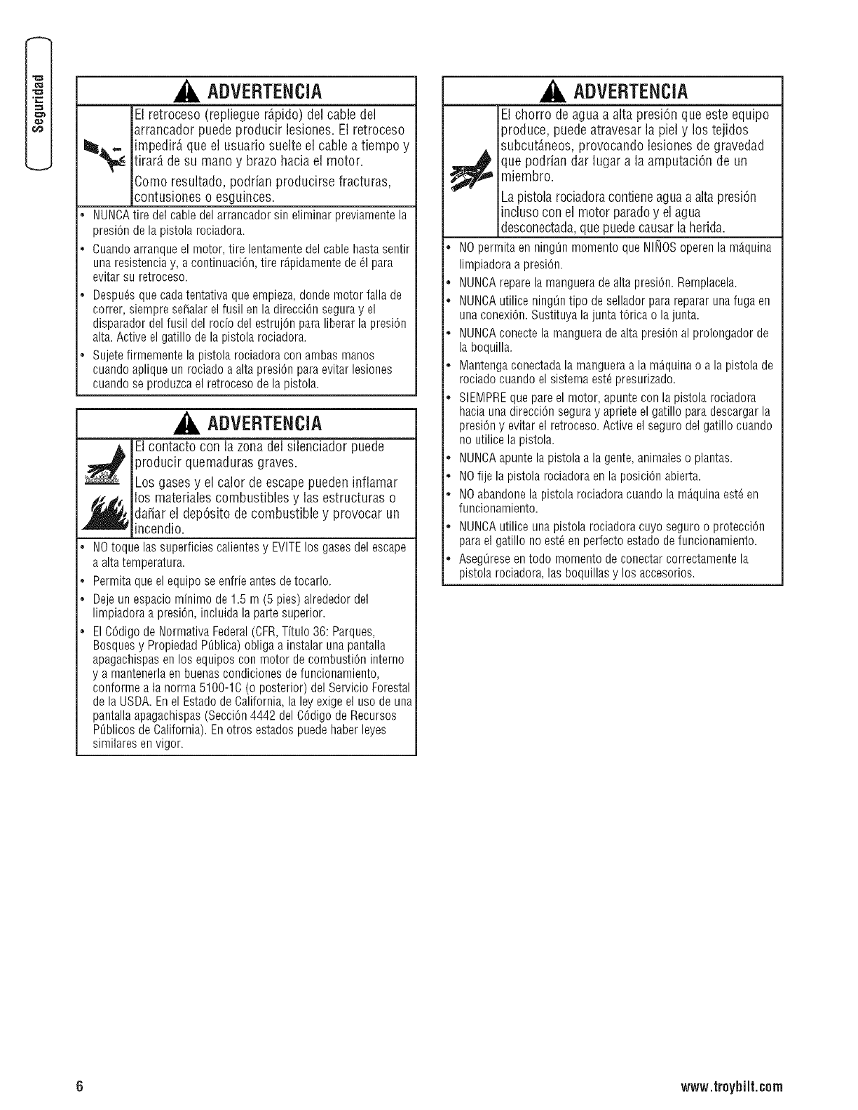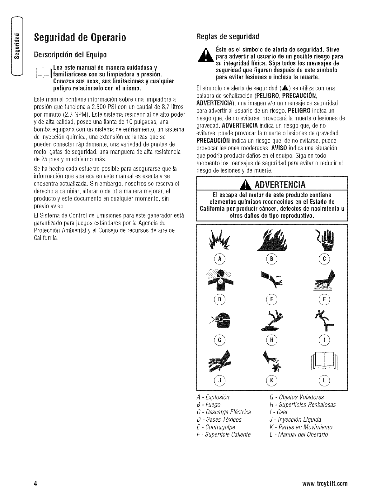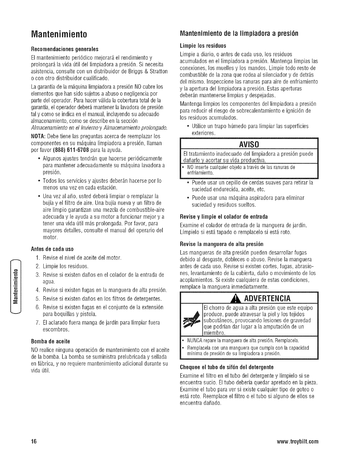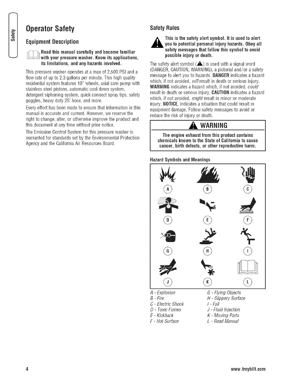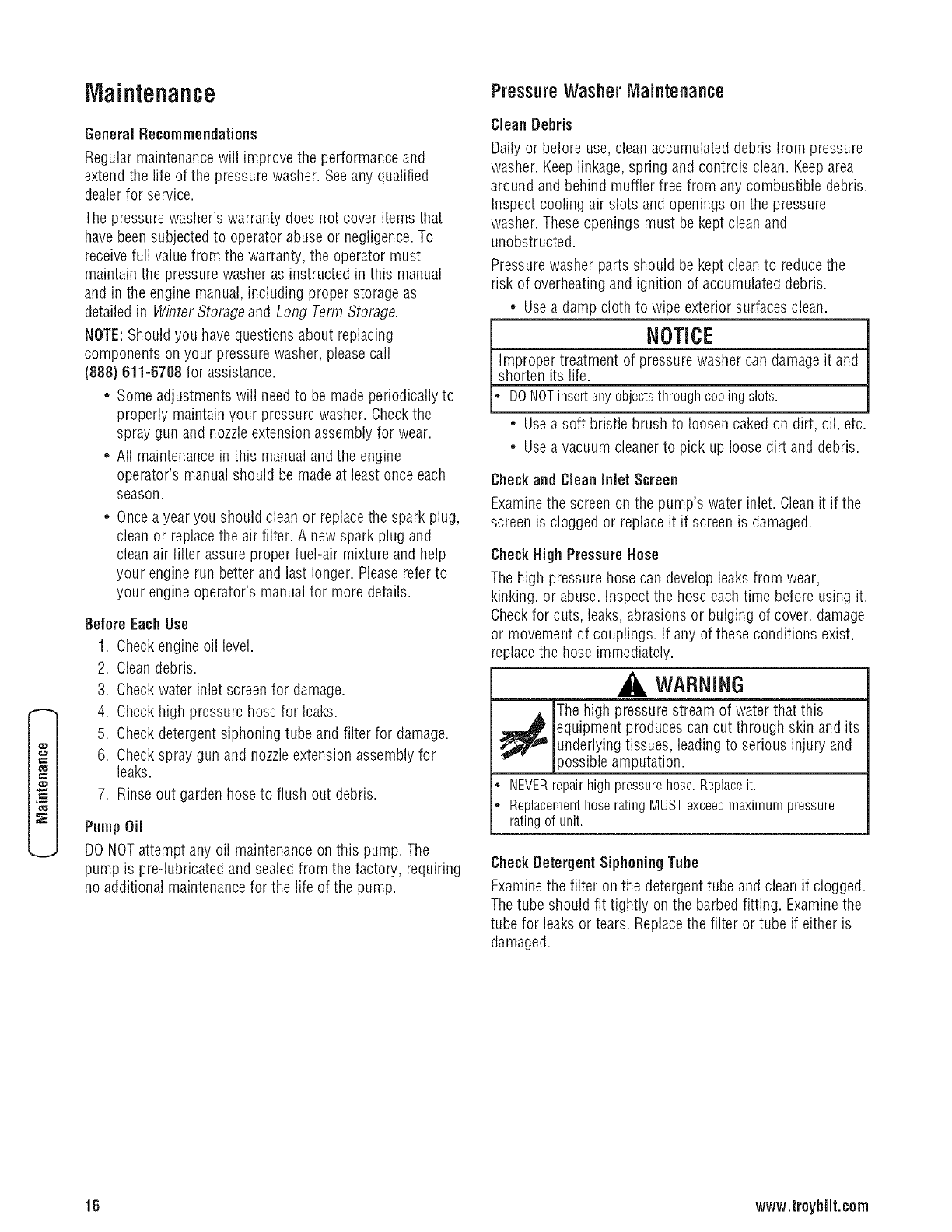 how to avoid them. BecauseTroy-Bilt does not necessarily know all the applications this pressure washer could be used for, it
