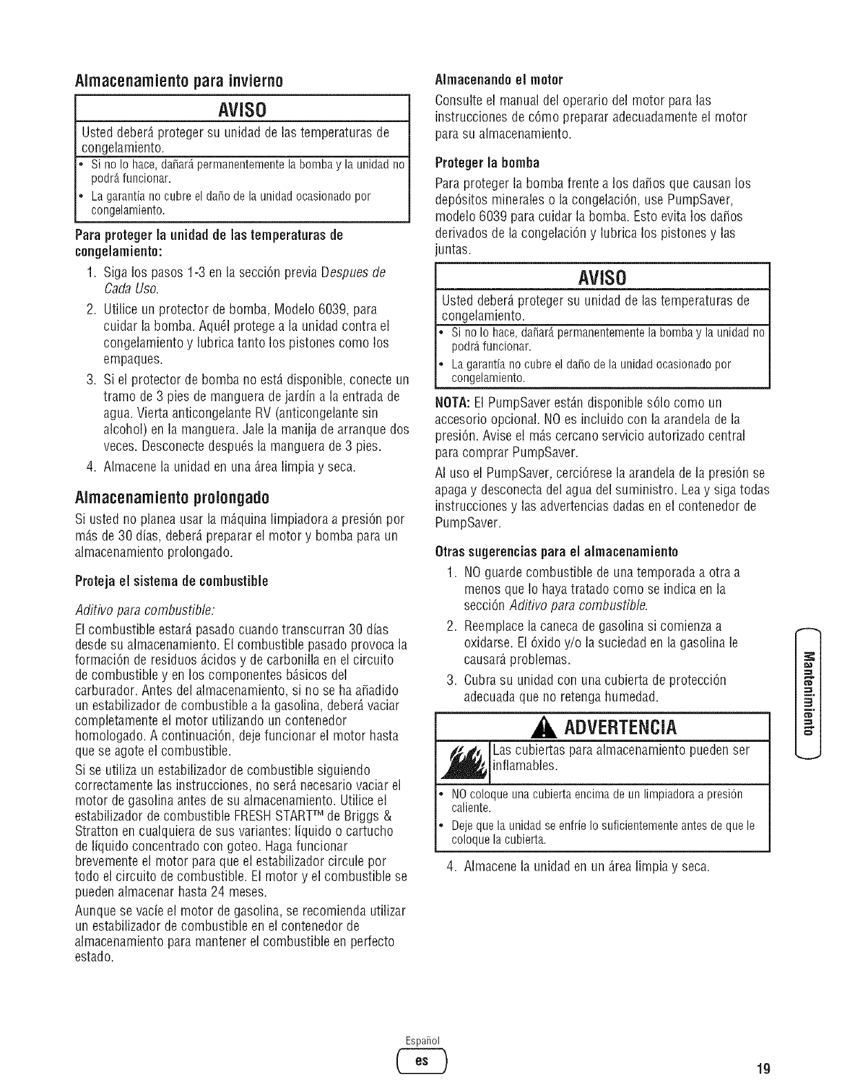 mantenimiento normal, como los filtres de aire, los ajustes y la limpieza o la obstrucciOn del sistema de combustion (debido a materias quimicas,