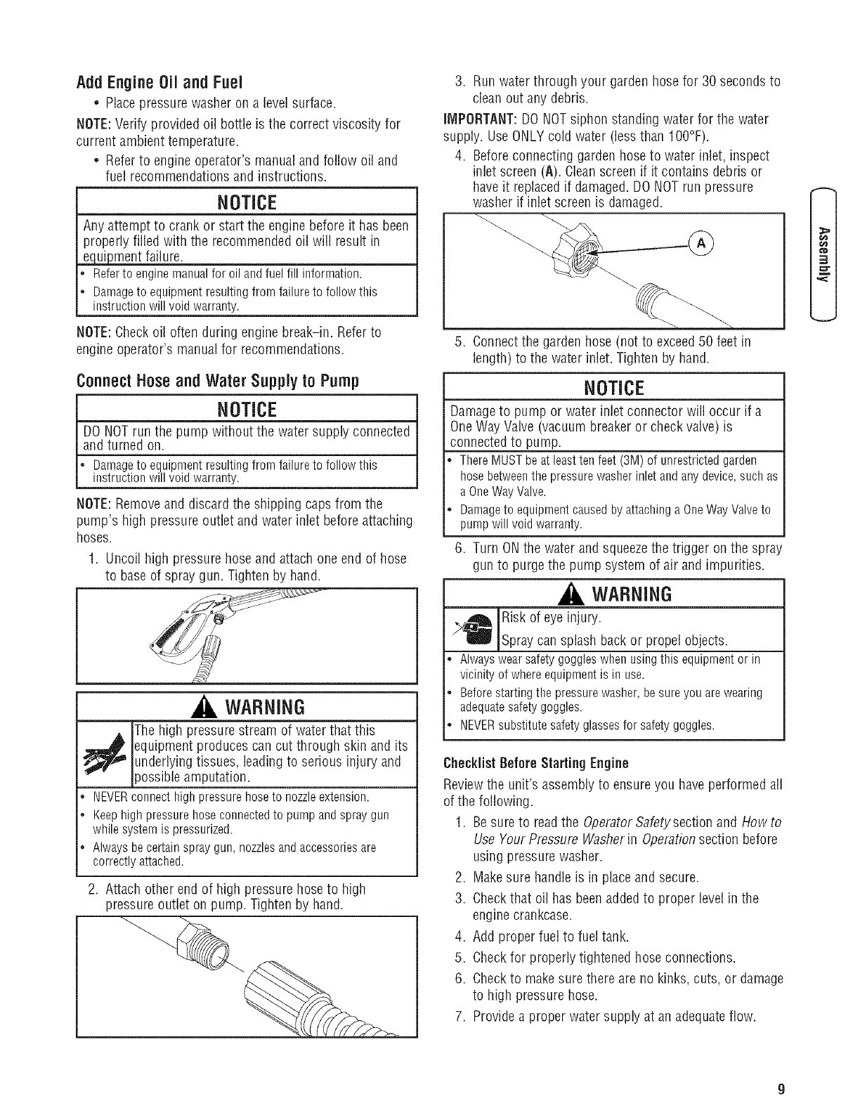 This pressurewasher requires final assembly before use. Referto the Assembly section of this manual for instructions on