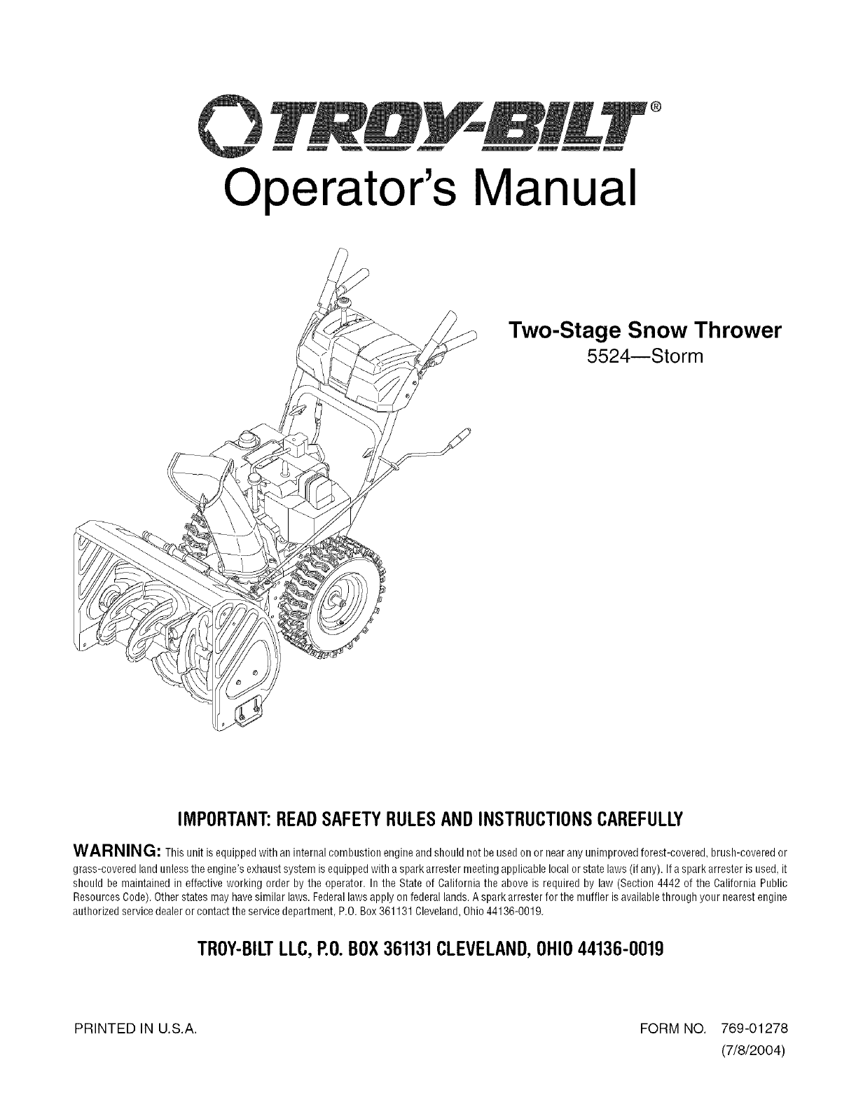 Troy Bilt 5524 Storm Operators Manual ManualsLib Makes It Easy To Find Manuals Online!