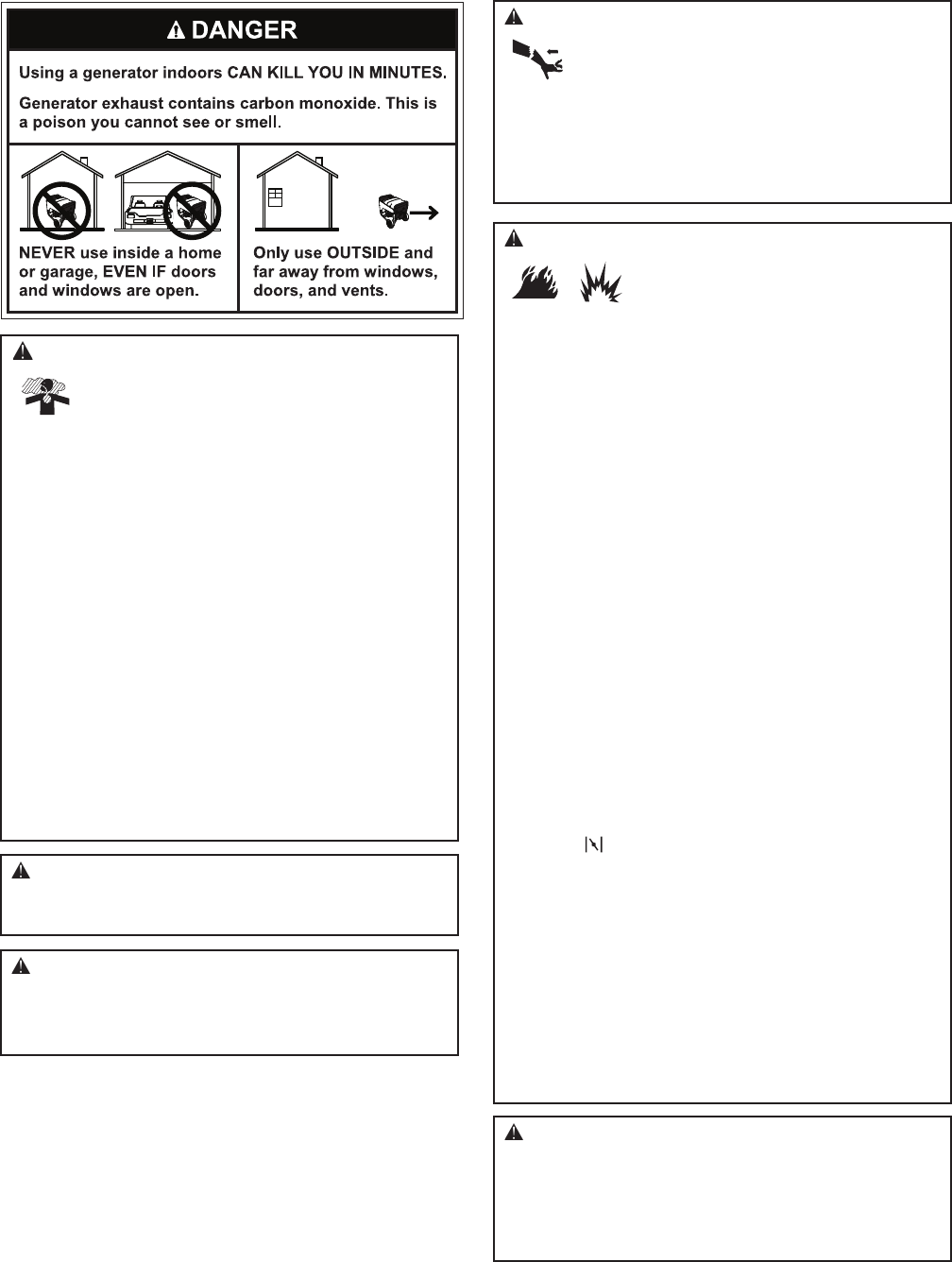 This manual contains safety information to make you aware of the hazards and risks associated with generators and how to