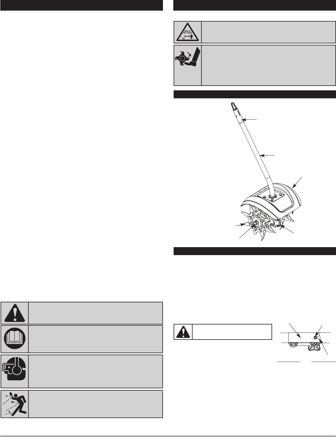 • Inspect the unit before use. Ensure the tines are installed correctly