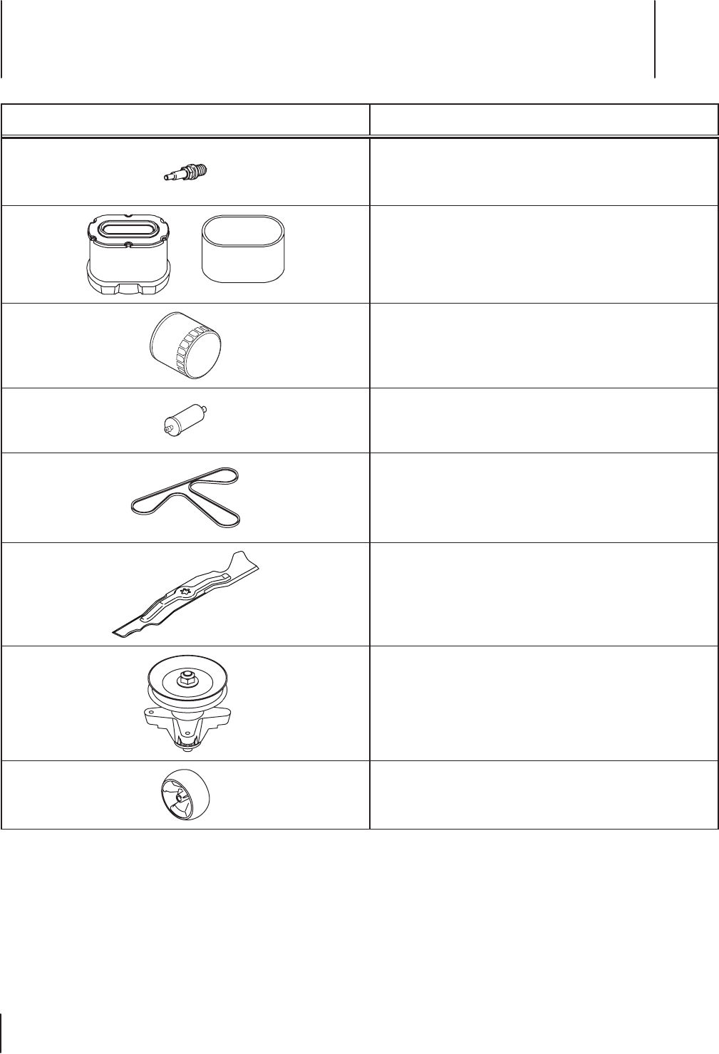 c. Routine maintenance items such as lubricants, filters, blade