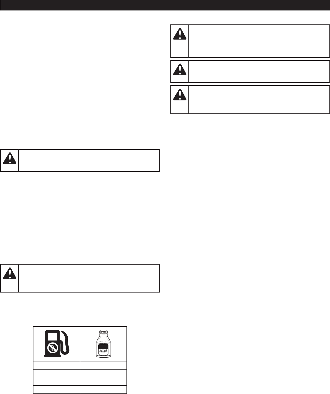 fuel leaks. Make sure all fasteners are in place and secure.