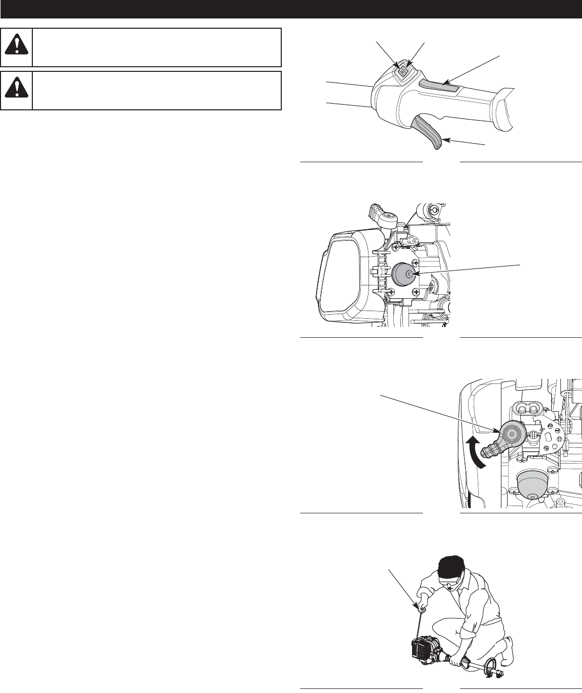 El bulbo del cebador no se presionó lo suficiente Oprima el bulbo del cebador 10 veces o hasta que se vea combustible