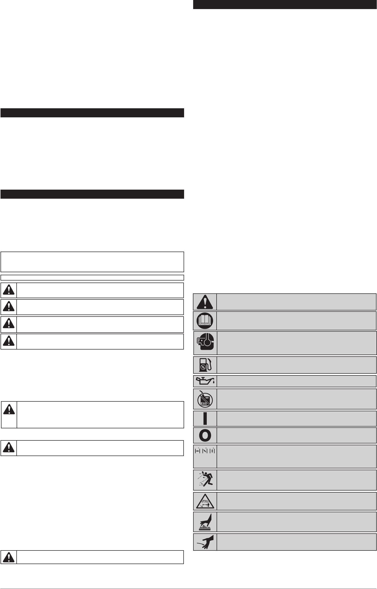 Peso de la unidad (Sin combustible, con accesorio de corte, y manija en D) . . . . . . . . . . . . . . 10 - 11 libras (4.5 - 5 kg)