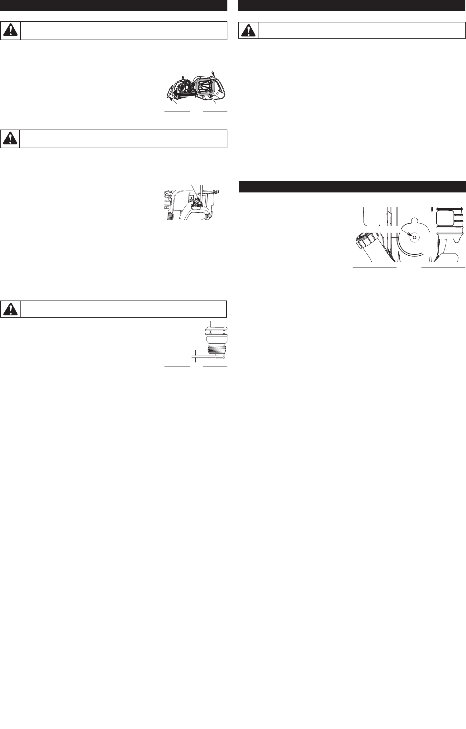 Separación de la bujía de encendido . . . . . . . . . . . . . . . . . . . . . . . . . . . . . . . . . . . . . . . . . . . . . . 0.025 pulg (0.635 mm)