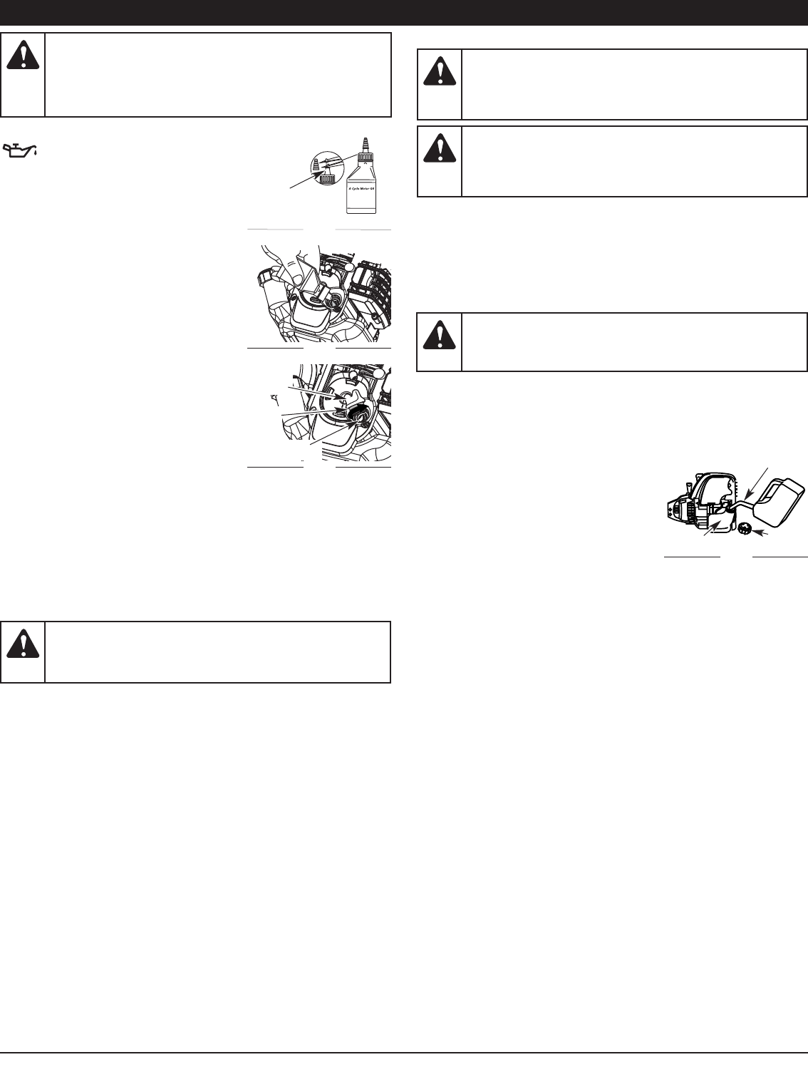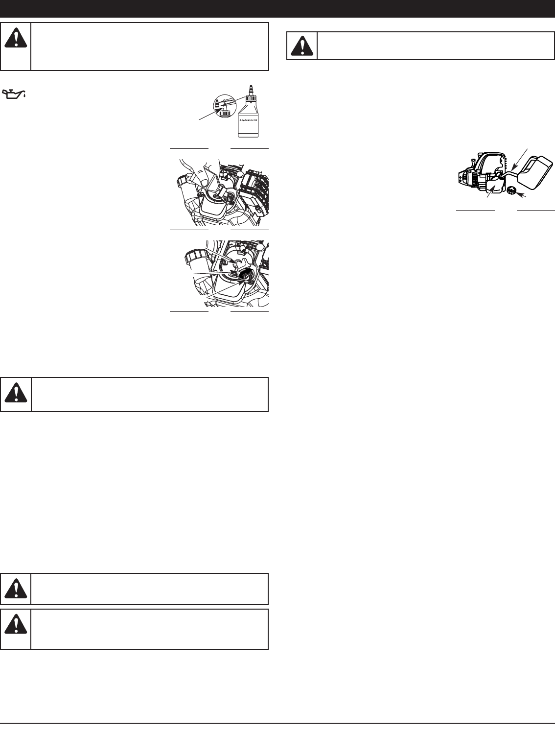 • Avoid creating a source of ignition for spilled fuel. Wipe up any spilled fuel