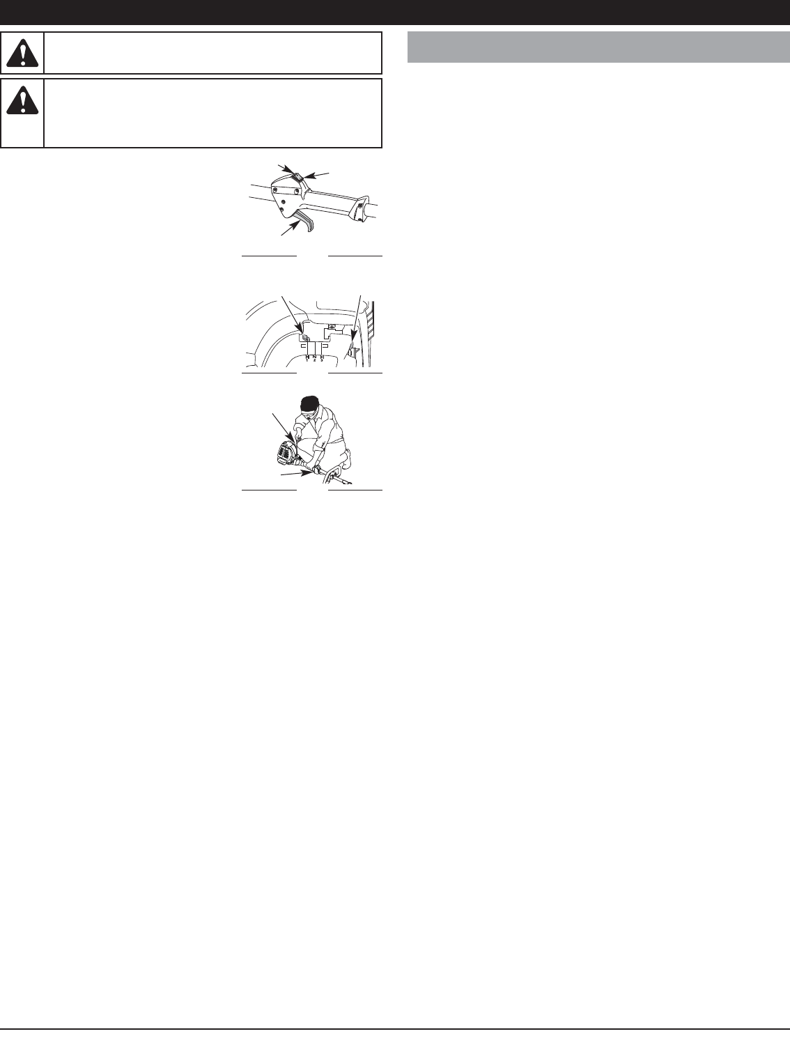 • Inspect the unit before use. Replace damaged parts. Check for fuel leaks.