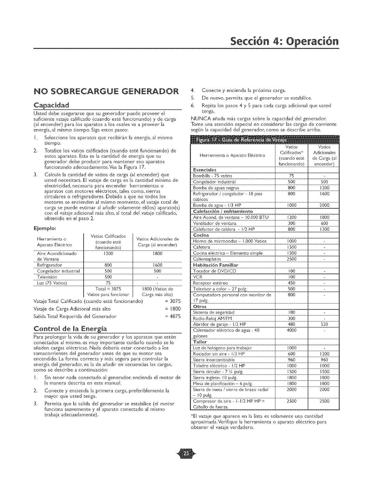 2, Vea "No Sobrerecarque Generador',