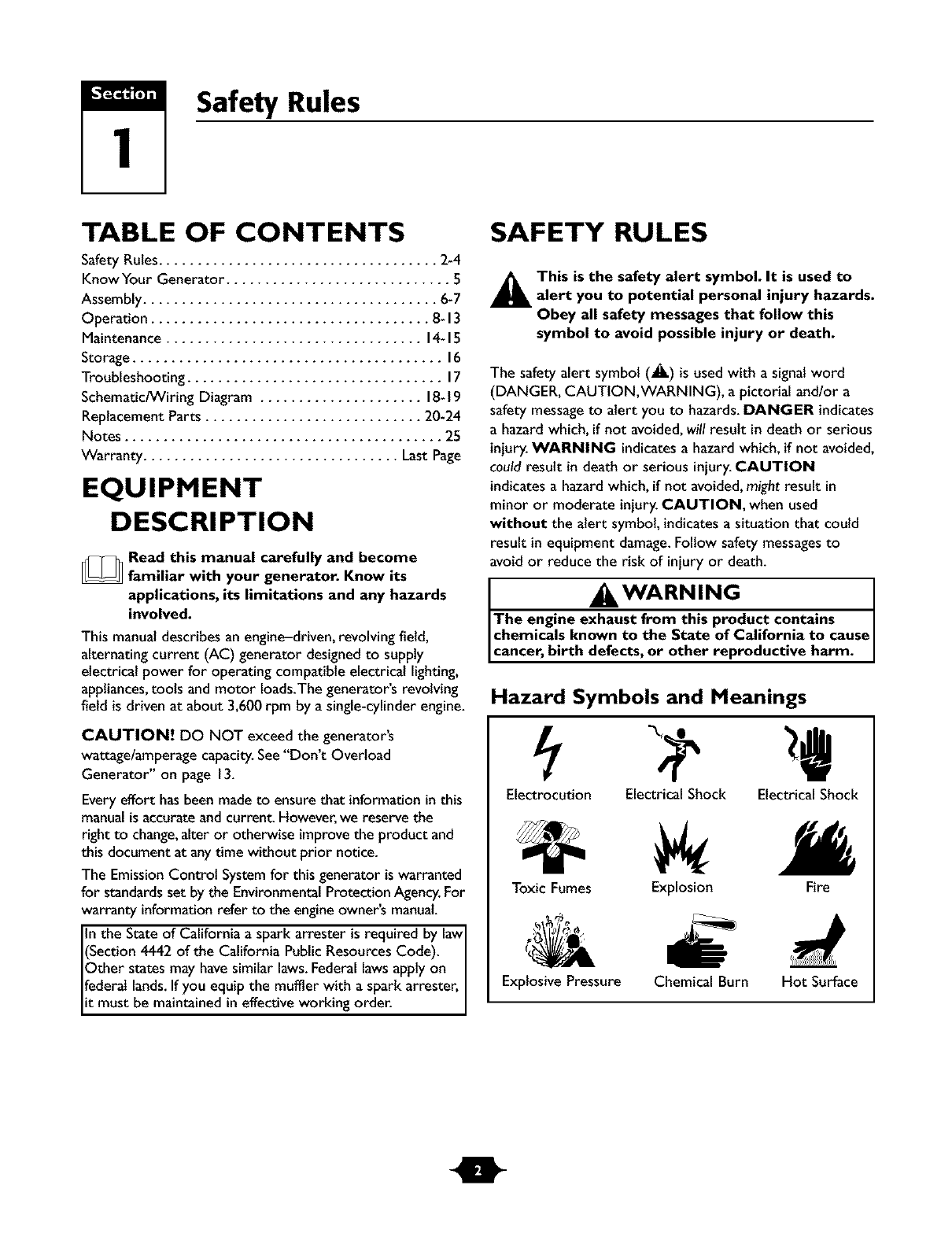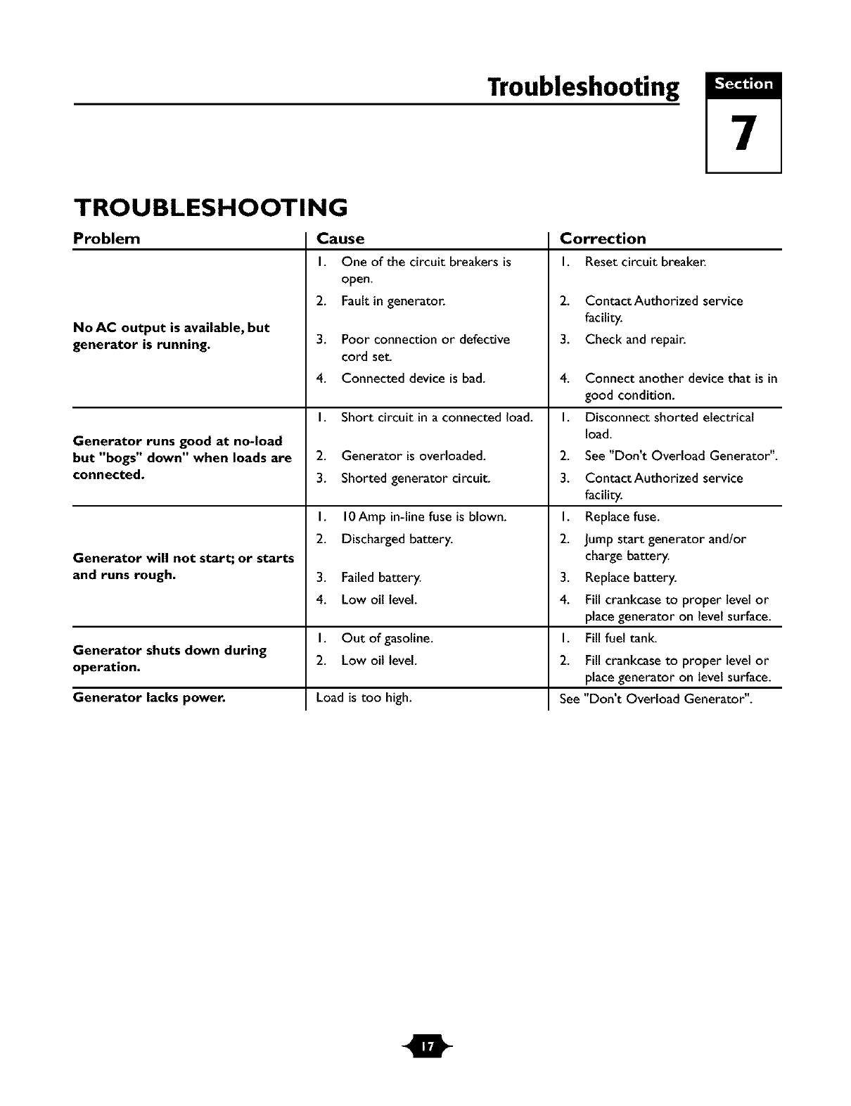 Troybilt 01925 User Manual GENERATOR Manuals And Guides L0404011