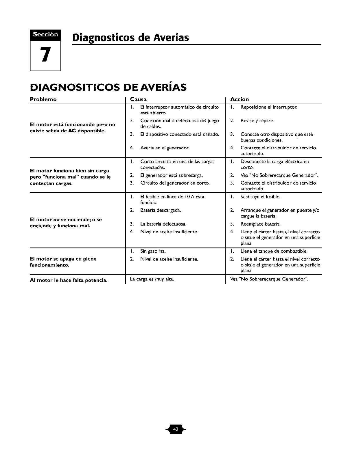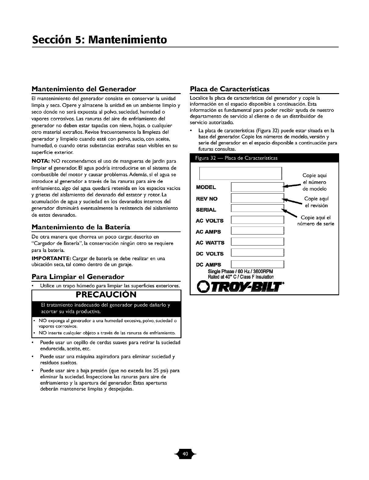 fiabilidad. Estagarantta tambi_n no cubre el mantenimiento normal tales como ajustes,limpieza del sistema de combustibn y la