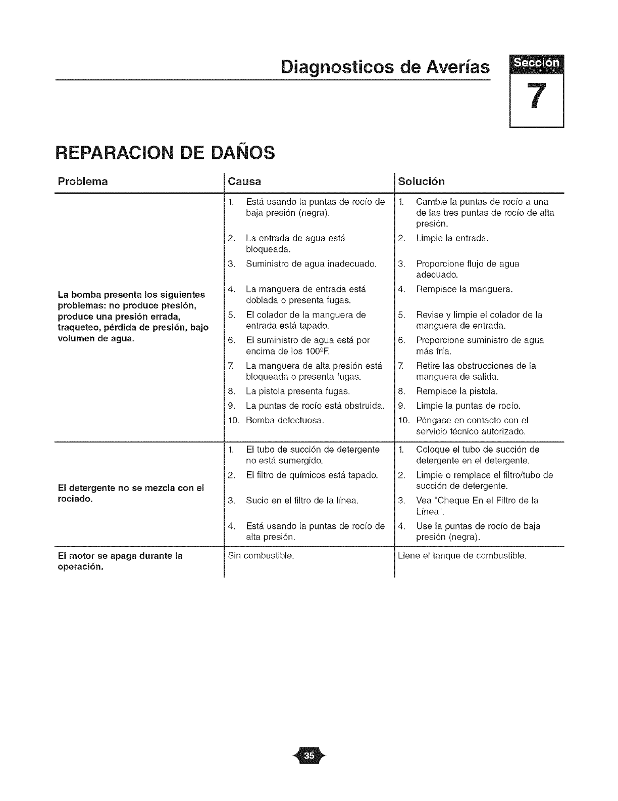 lavadora a presi0n o del motor, o si el equipo ha side alterado o modificado. Durante el periodo de garantia, el distribuidor de servicio autorizado podr_ reparar o