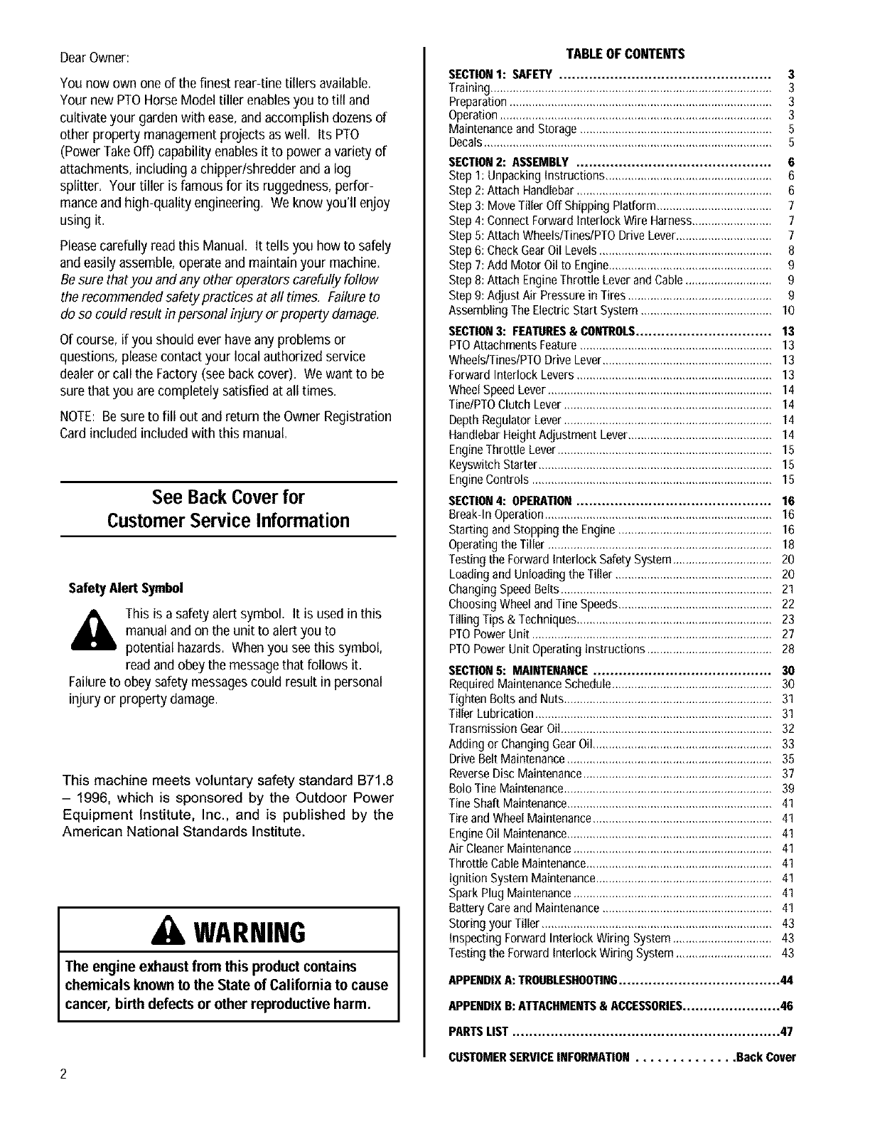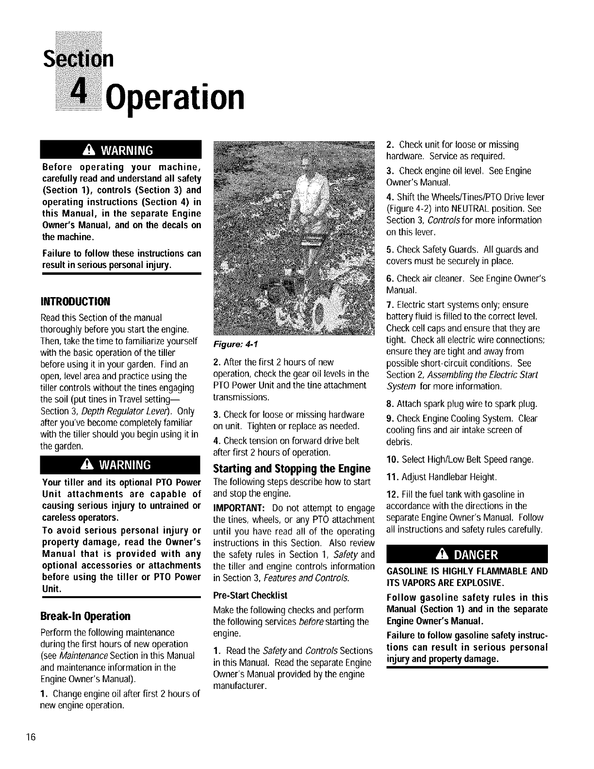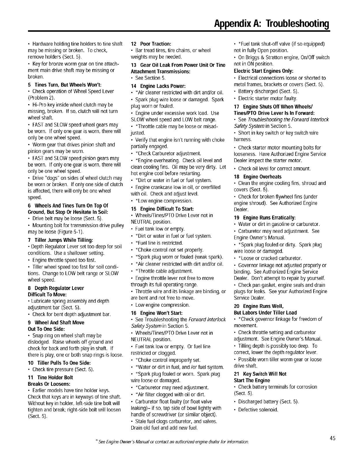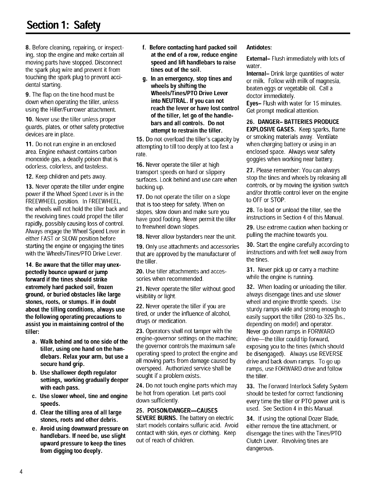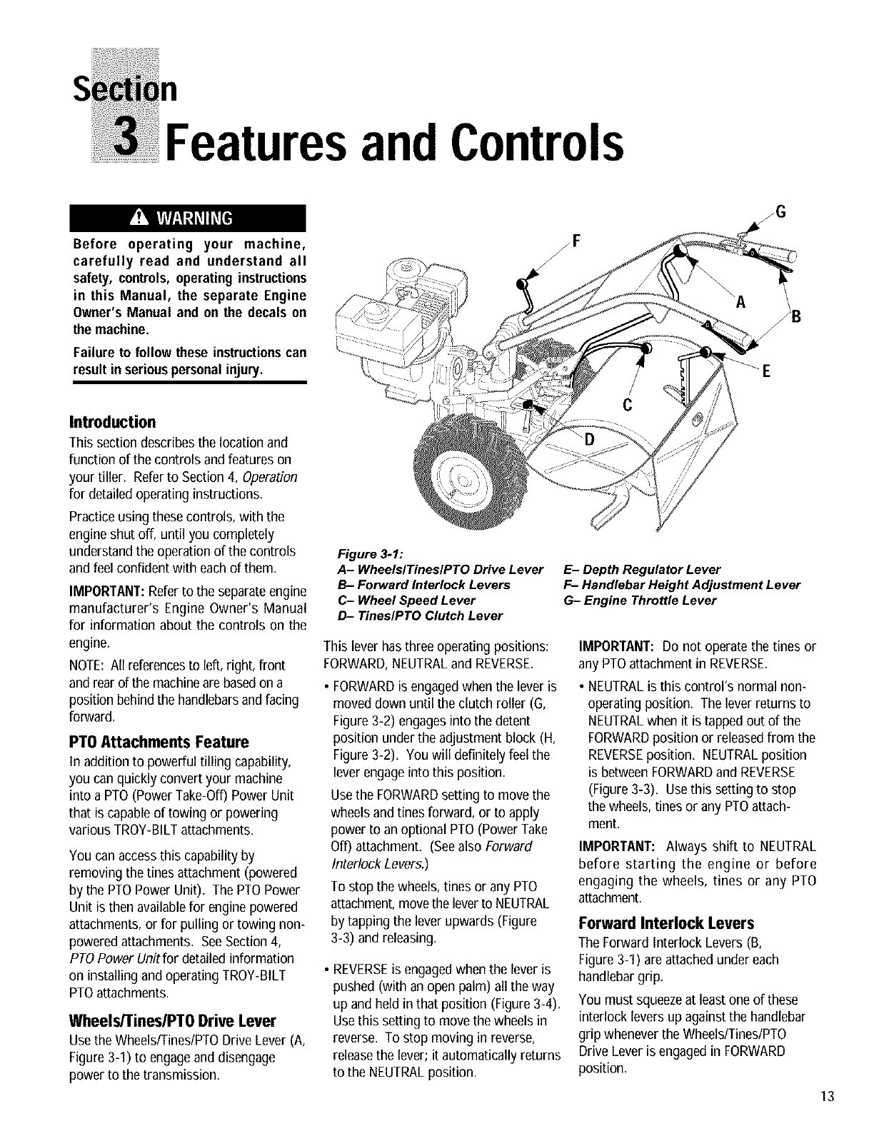 Wheels/Tines/PTODrive Lever..................................................... 13