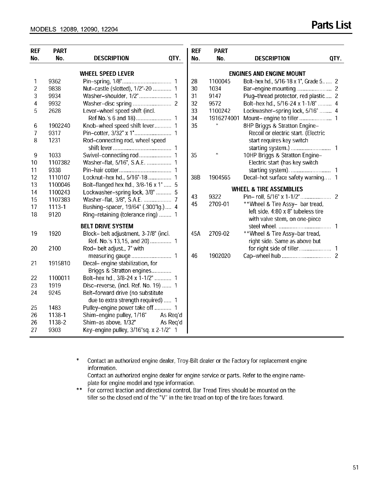 Troybilt 12089 User Manual TILLER Manuals And Guides L0401042