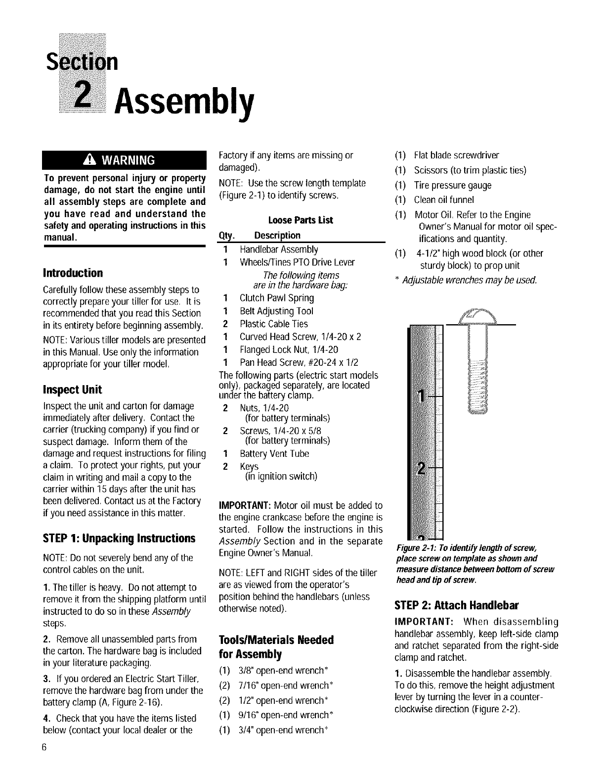 Step 3: Move Tiller Off Shipping Platform.................................... 7