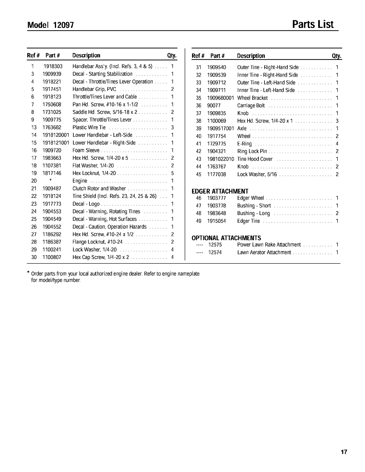 Troybilt 12097 User Manual TILLER/EDGER Manuals And Guides L0403037