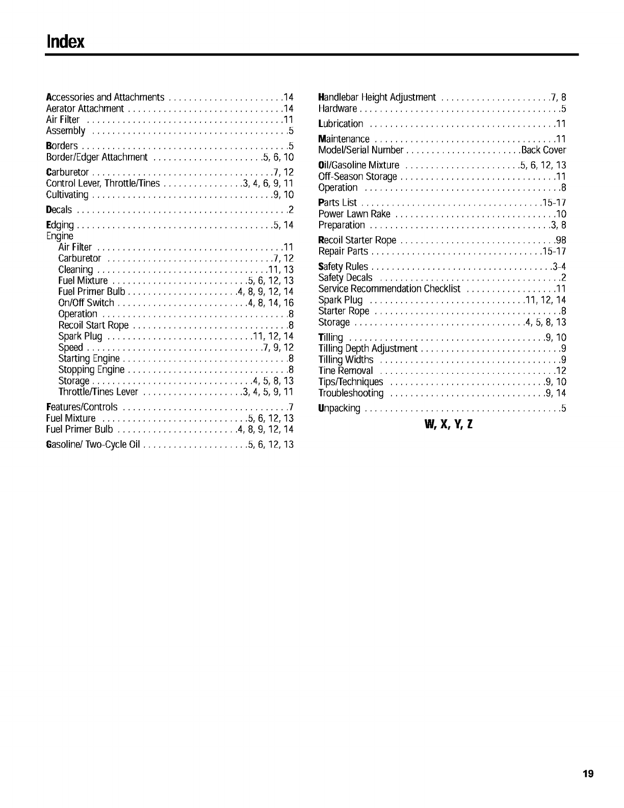 Oil/GasolineMixture ....................... 5, 6, 12, 13