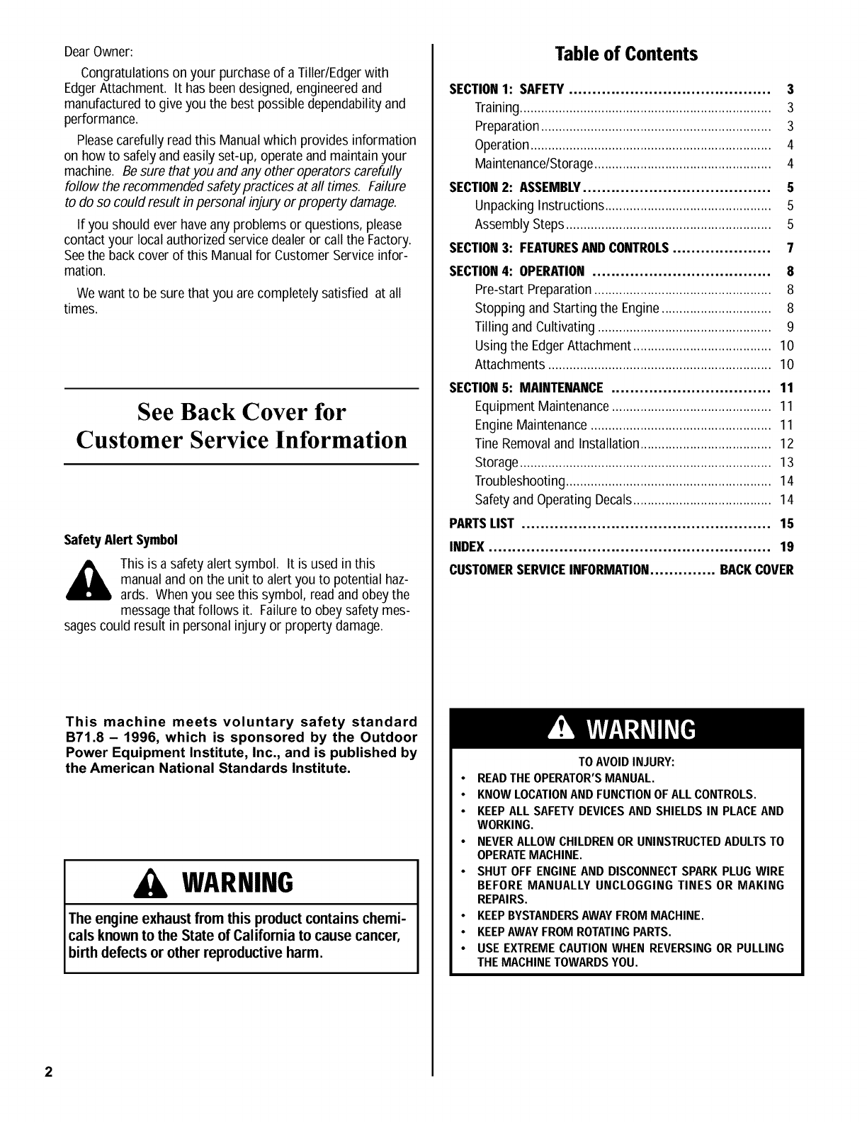 Congratulationson your purchaseof a Tiller/Edgerwith