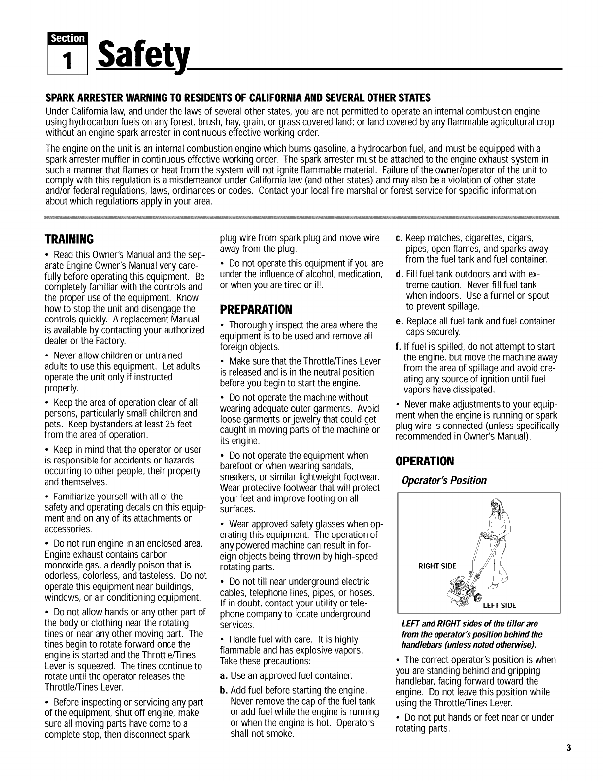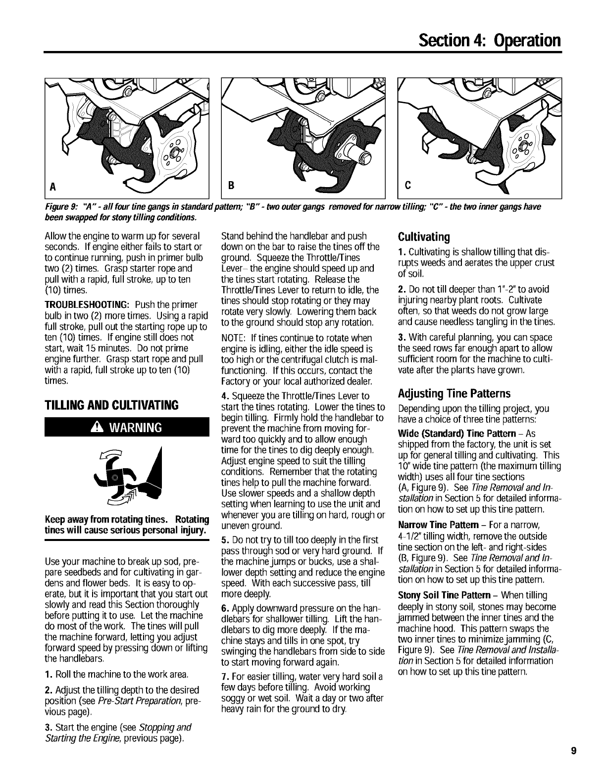 Tilling Depth Adjustment ............................ 9