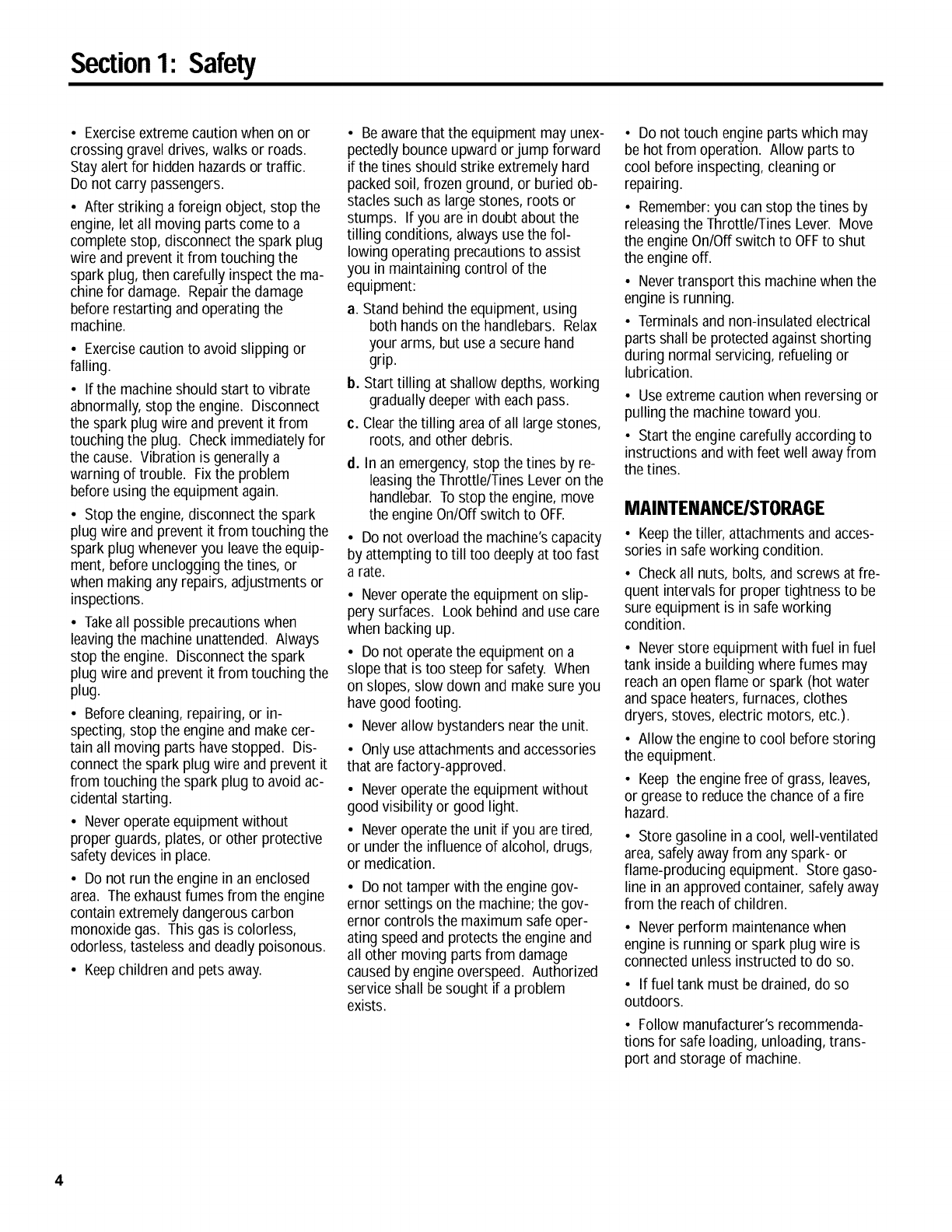 Maintenance/Storage.................................................. 4