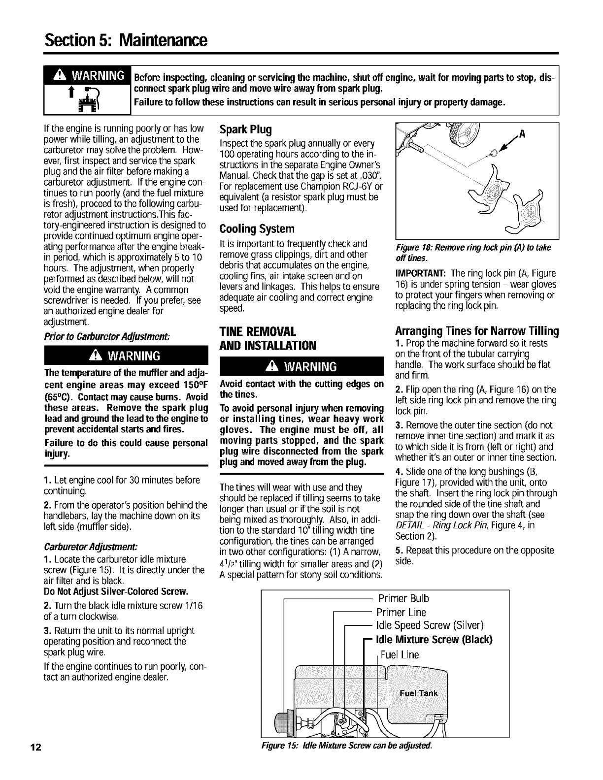 Spark Plug ............................... 11, 12, 14