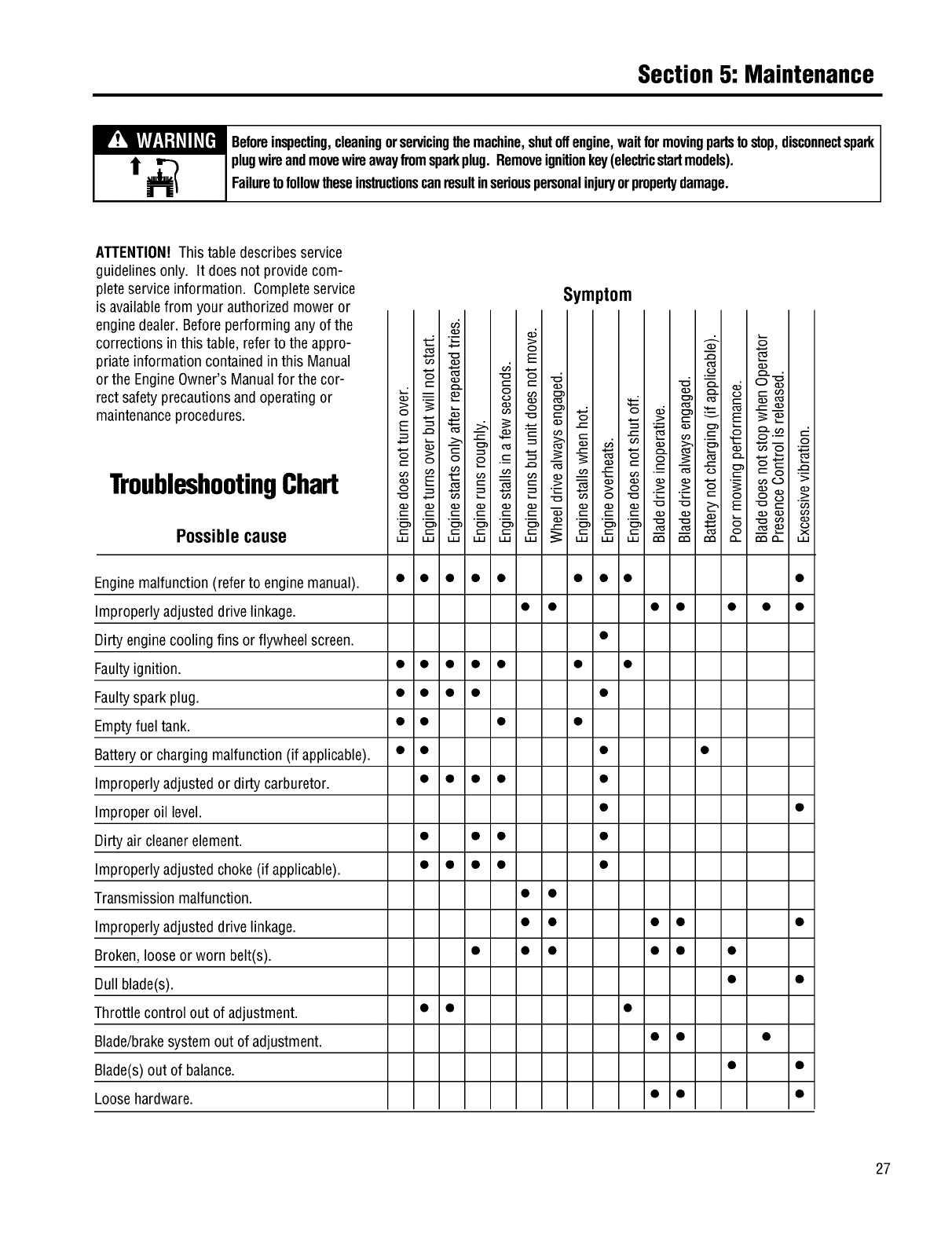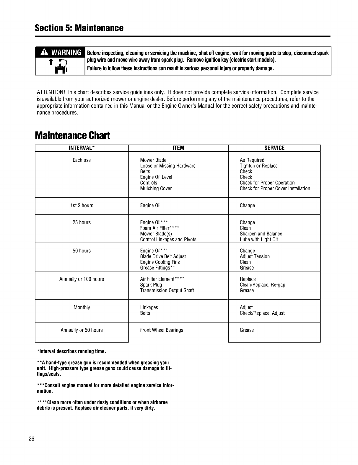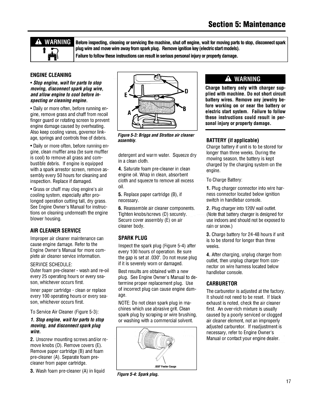 specifications, warranty and service. Please refer to the engine manufacturer's Owner's/Operator's Manual packed