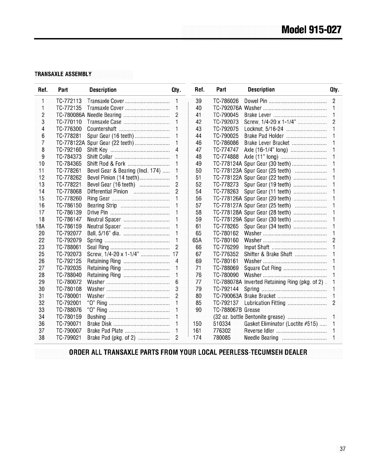 0RDER ALL TRANSAXLEPARTSFROMY0U R LOCALPEERLESS_TECUMSEHDEALER
